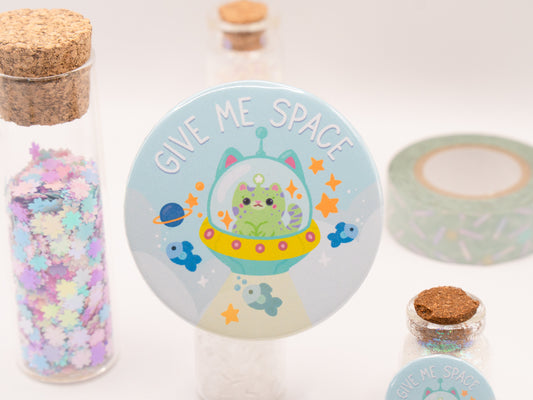 Badge Rond Chat extraterrestre mignon "Give Me Space"