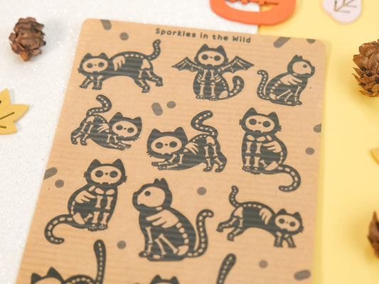 Feuille d'autocollants Kraft Squelette de Chat