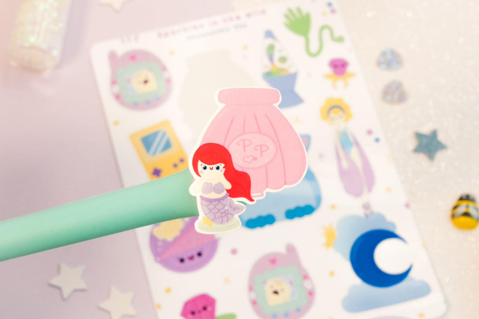 Autocollant mignon de chat Tamagotchi et autocollant mignon de sirène de Polly Pocket
