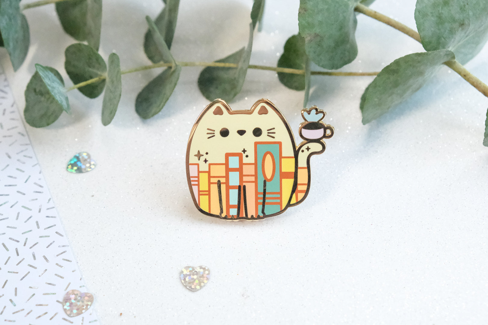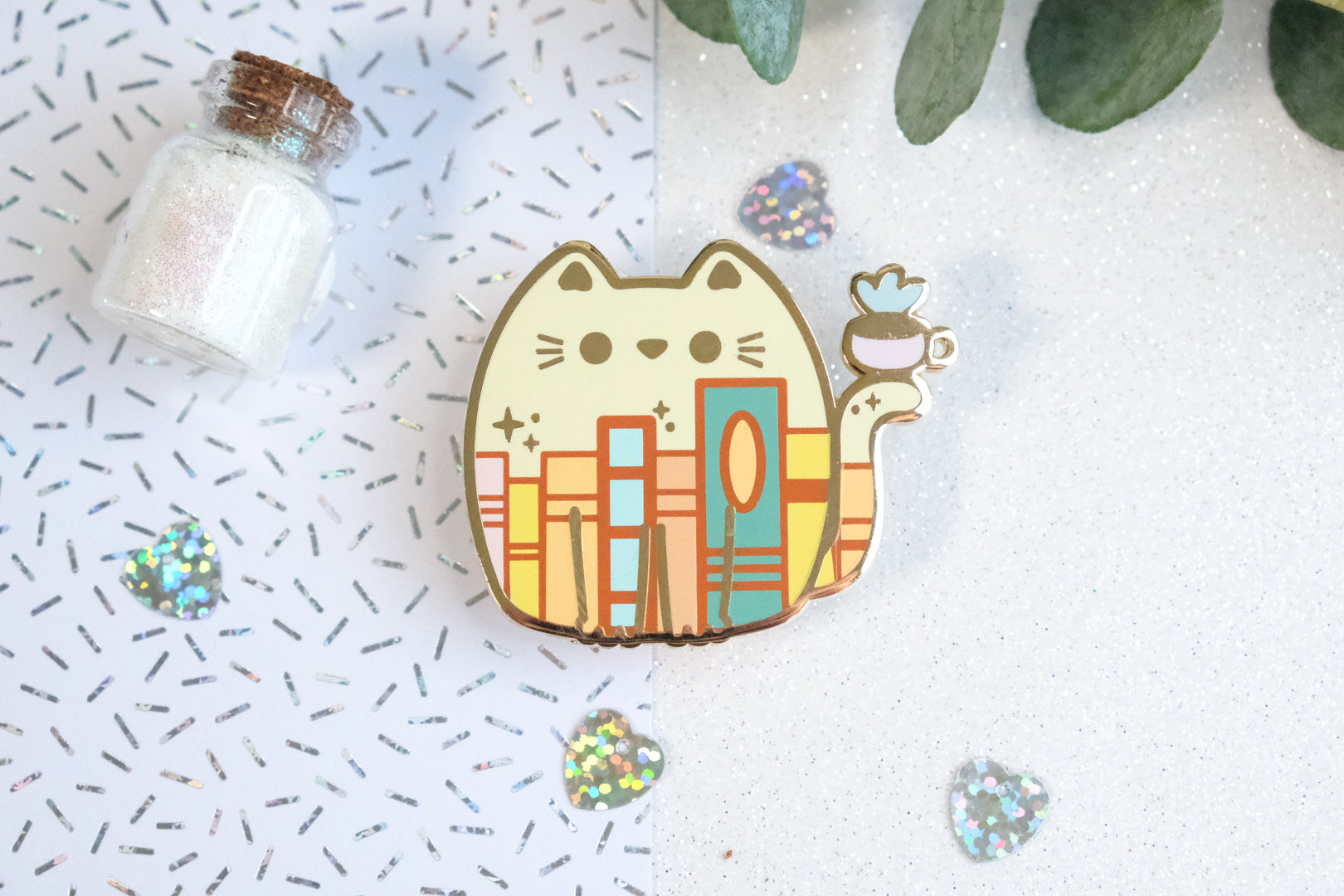 Bookworm - Pins chat pour amateurs de livres en émail dur pour décorer une veste ou un totebag - Whiskered Wonders Collection