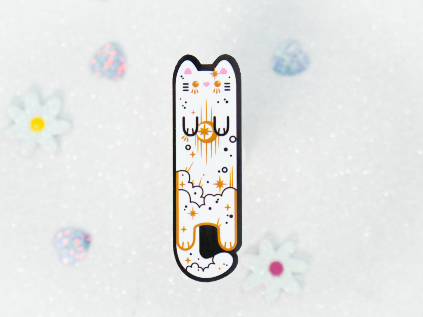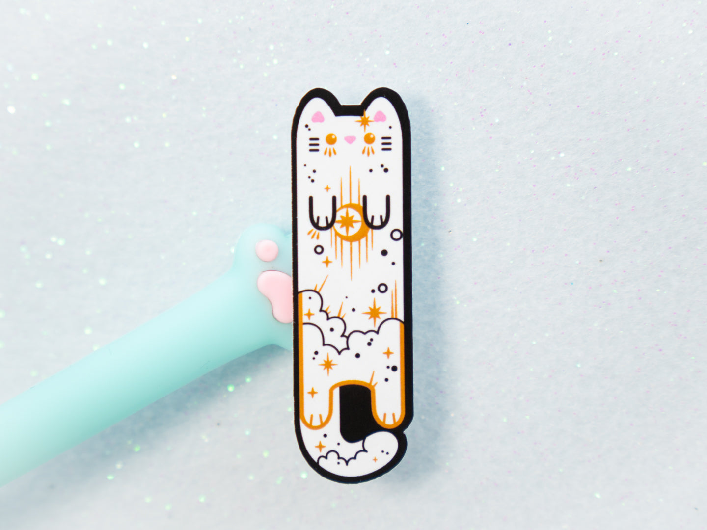 Procurez-vous dès aujourd'hui Celeste, l'un des 28 modèles d'autocollants kawaii de la collection Whiskered Longers, avant qu'ils ne soient épuisés !
