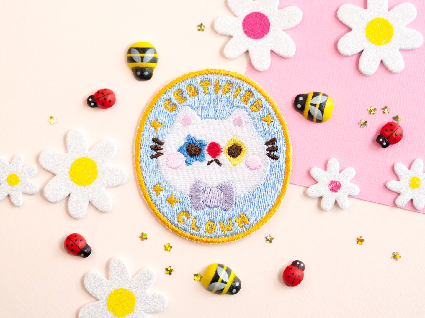 Joli patch thermocollant chat clown pour décorer vestes et jeans !
