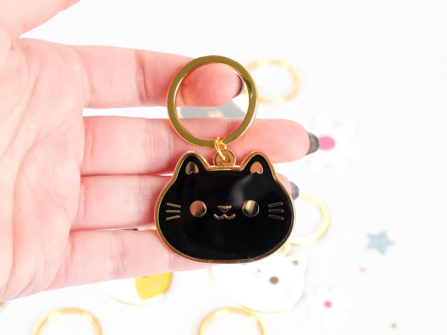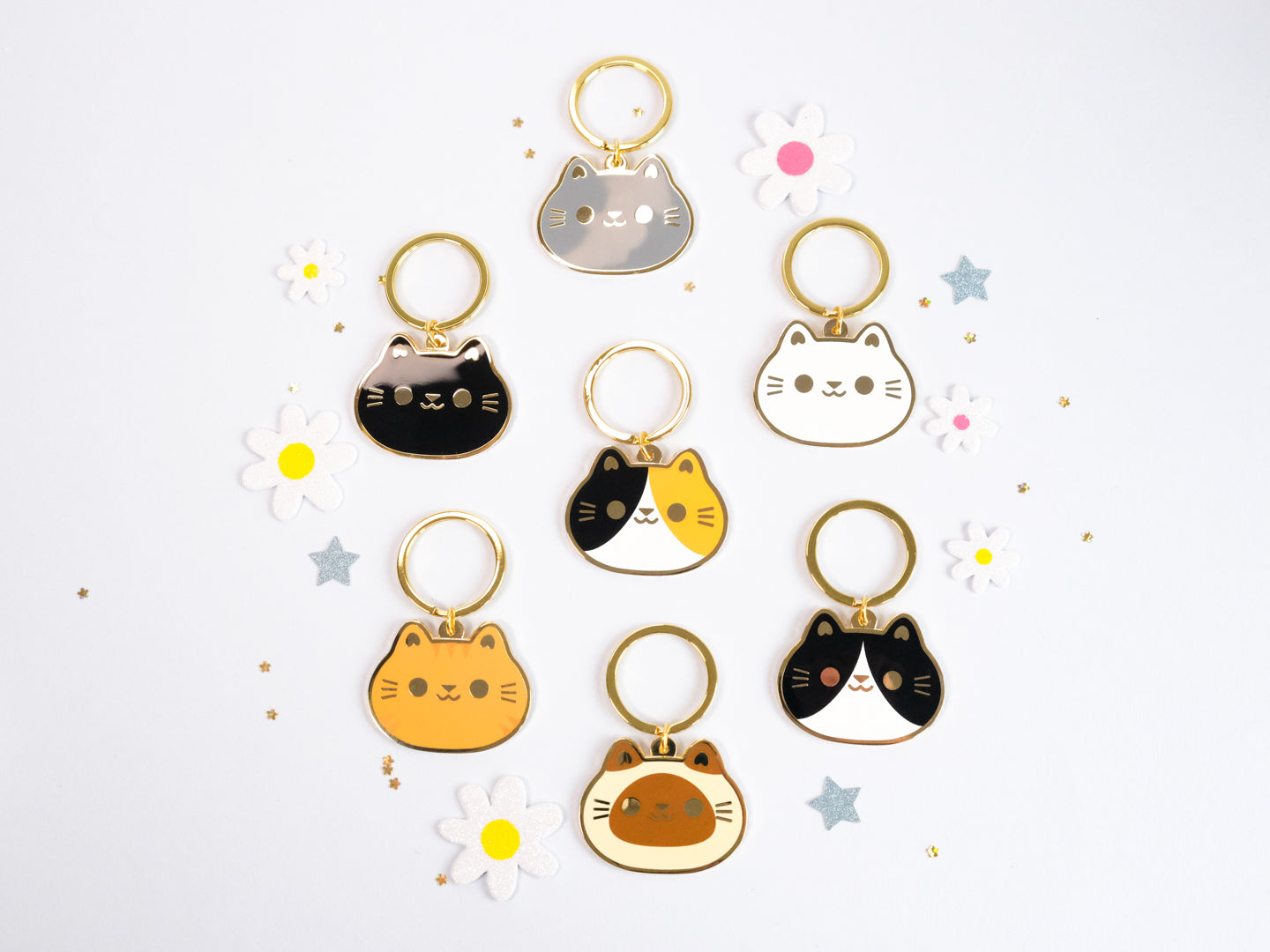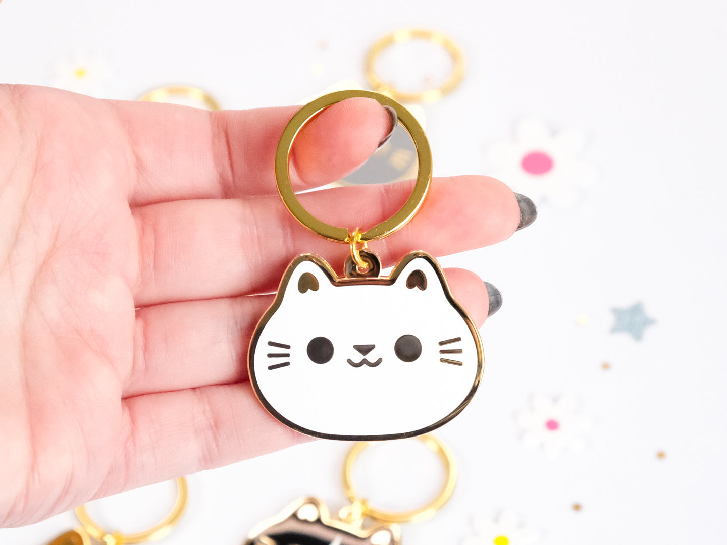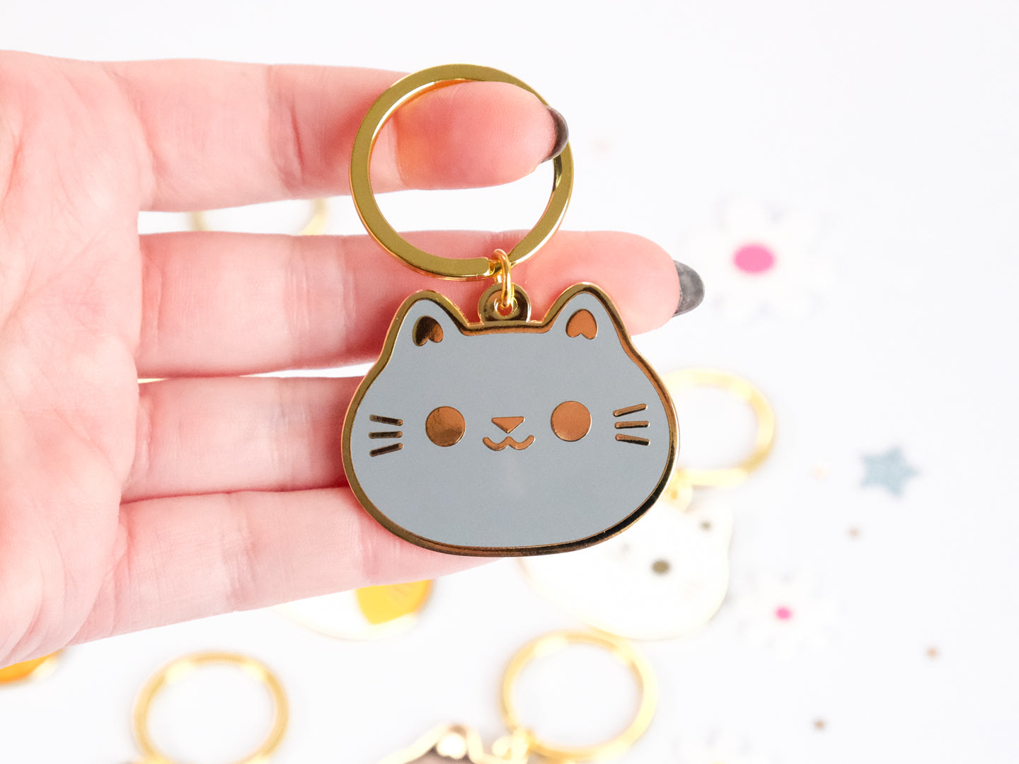 Porte-clés en émail Tête de Chat Rond et Mignon
