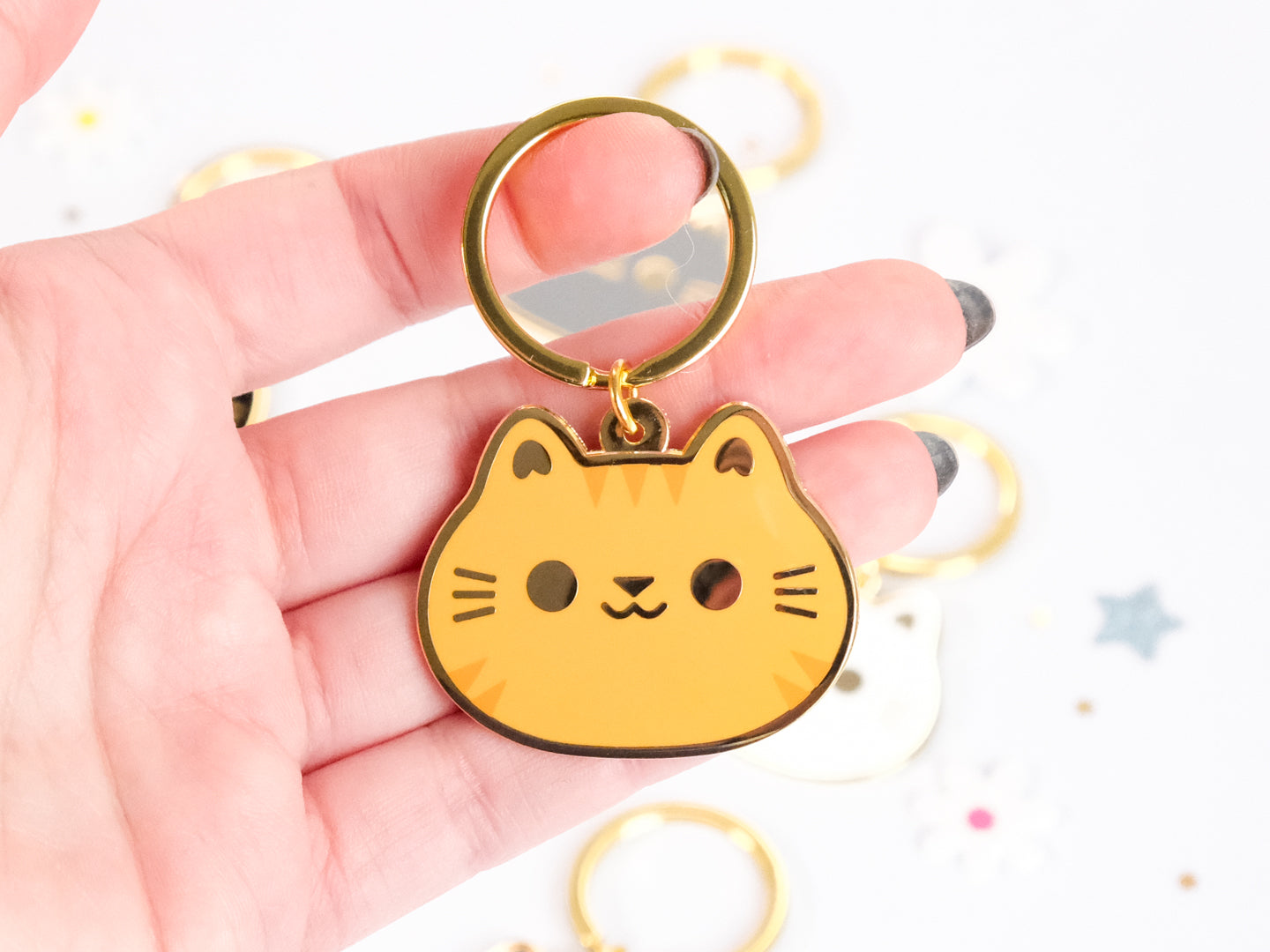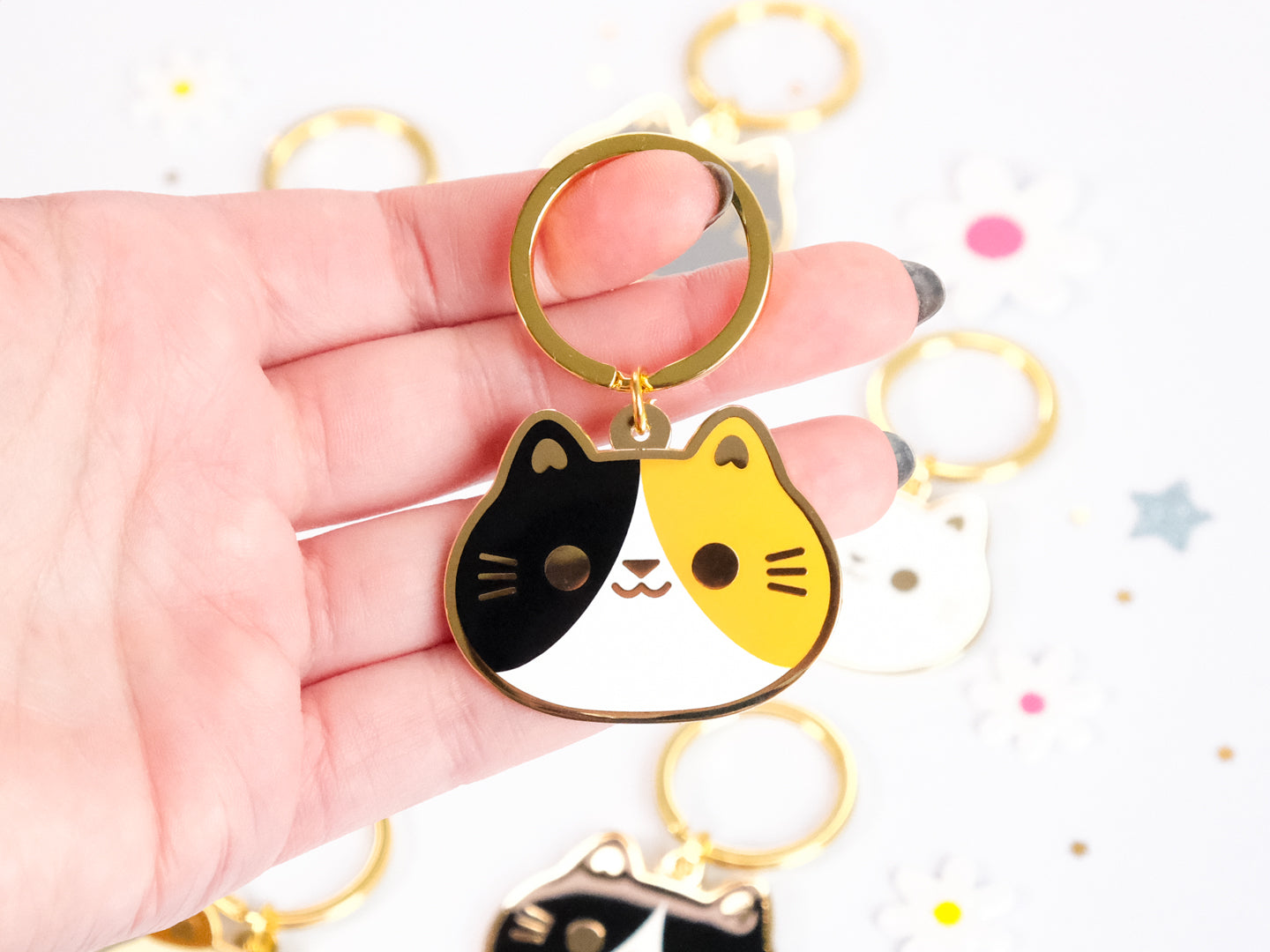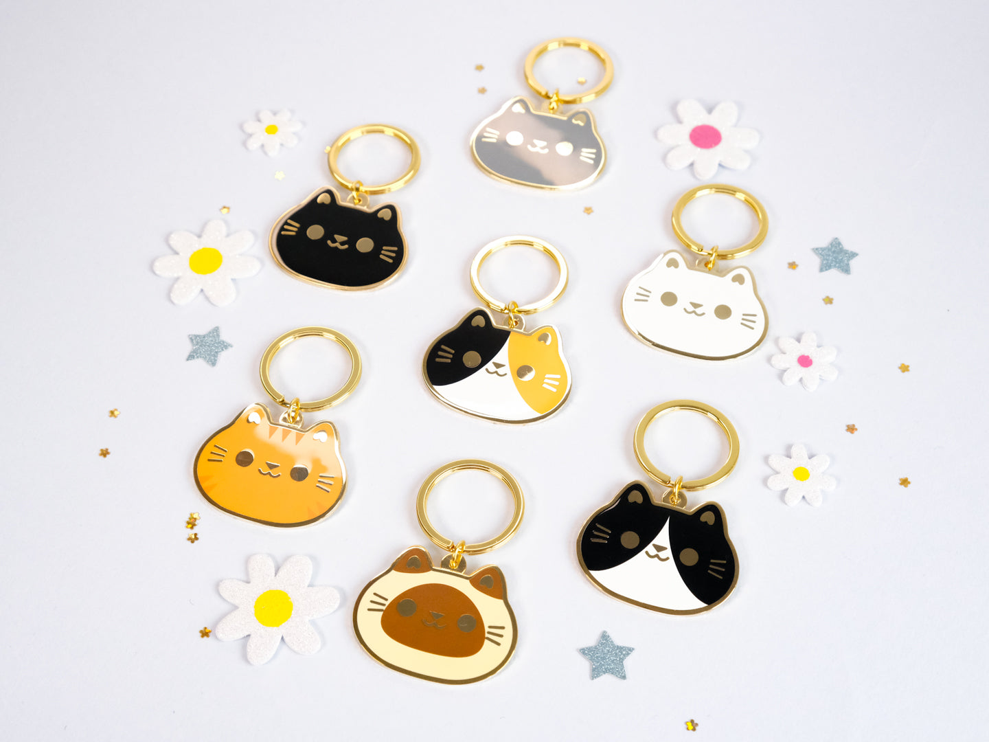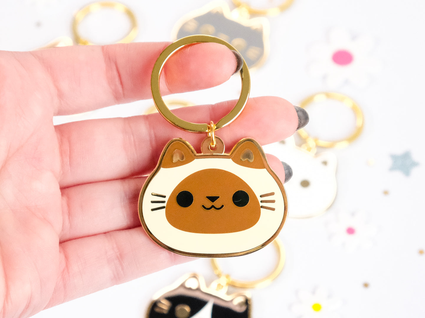 Porte-clés en émail Tête de Chat Rond et Mignon