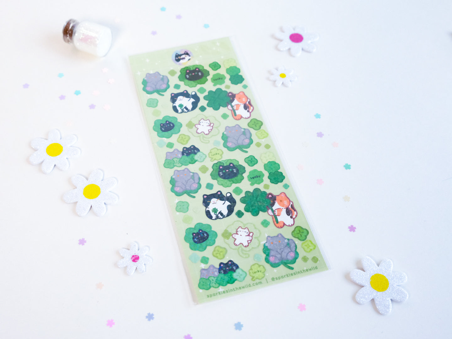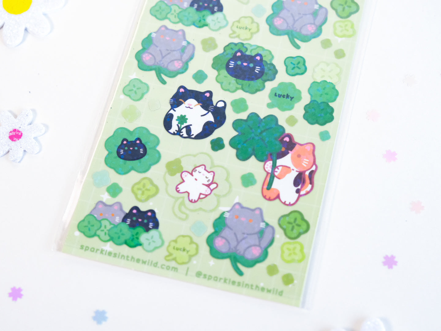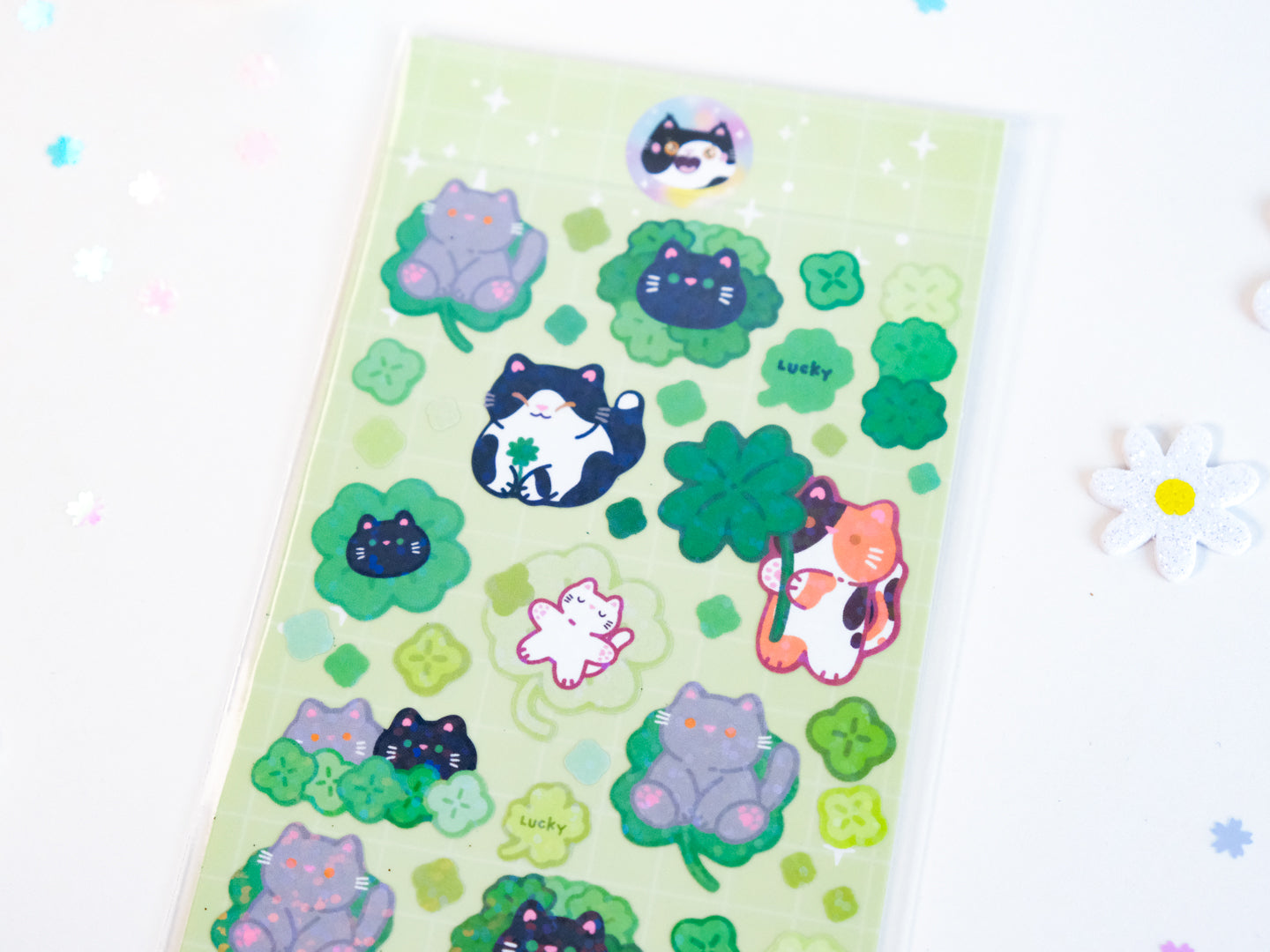 Feuille d'autocollants décoratifs Chat Trèfle✨