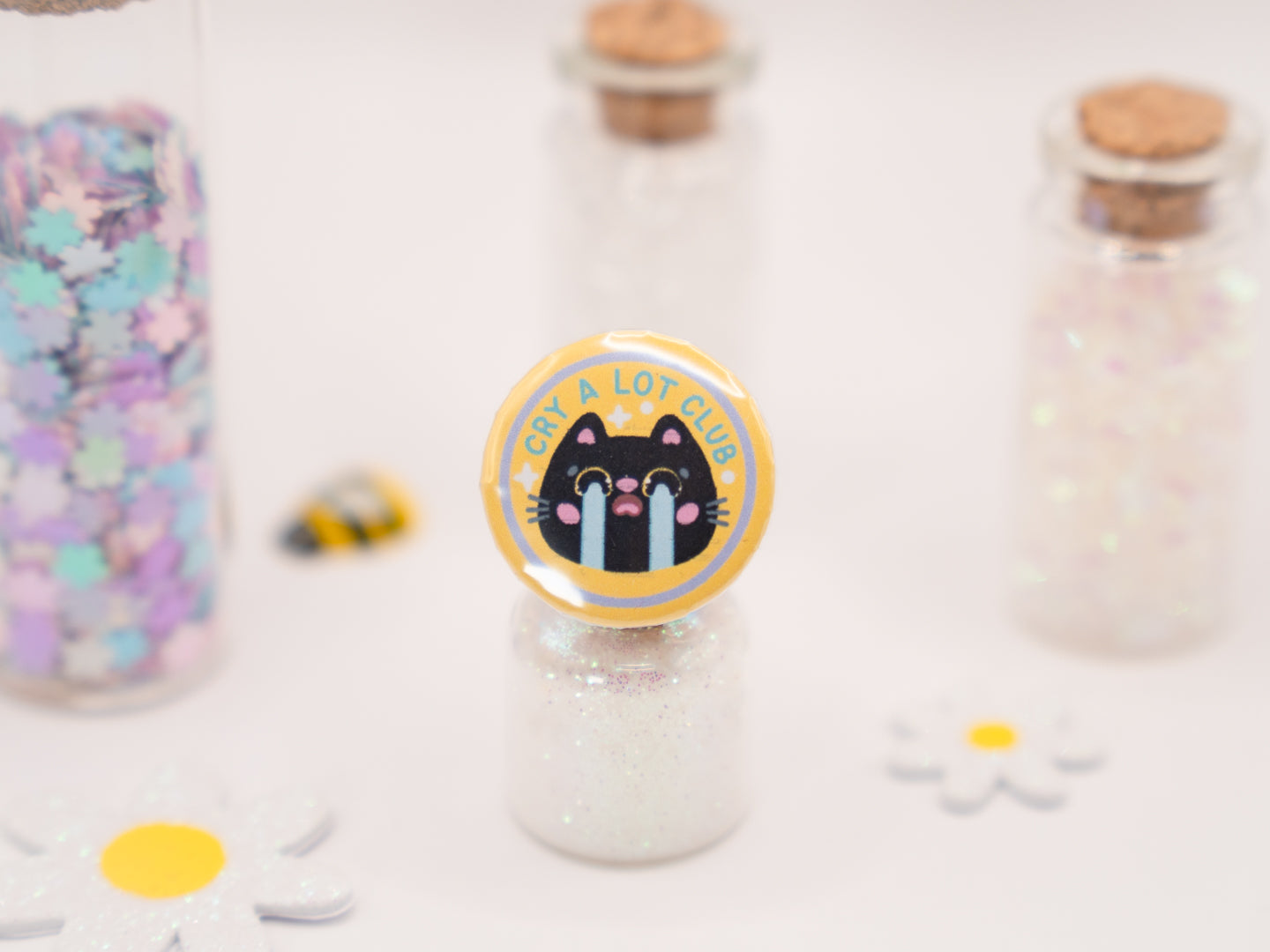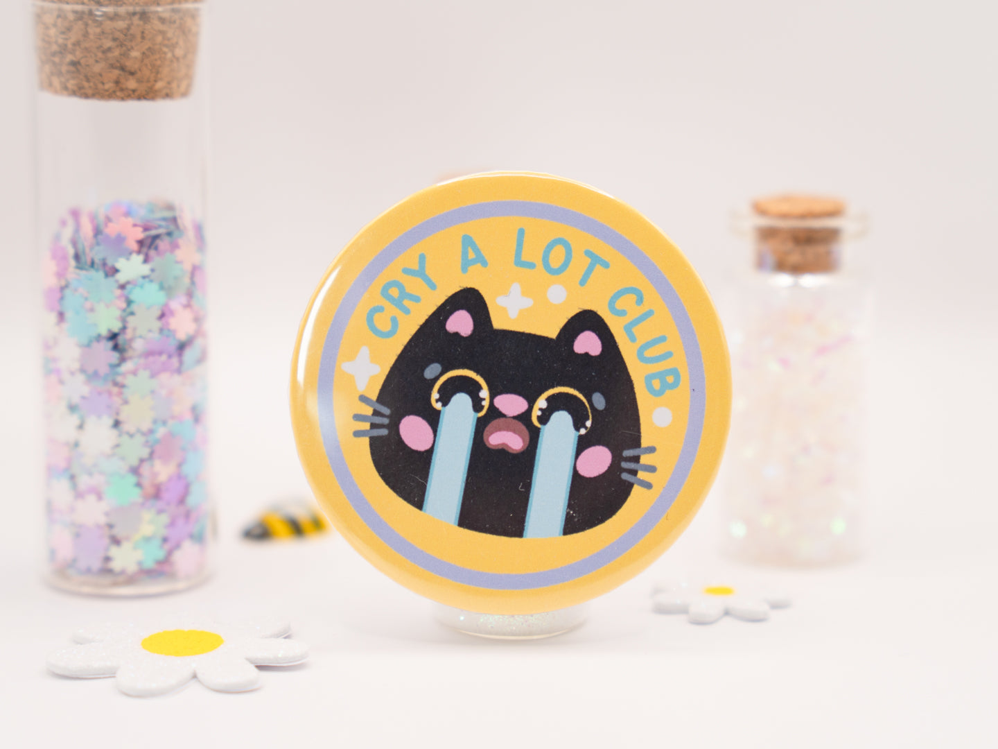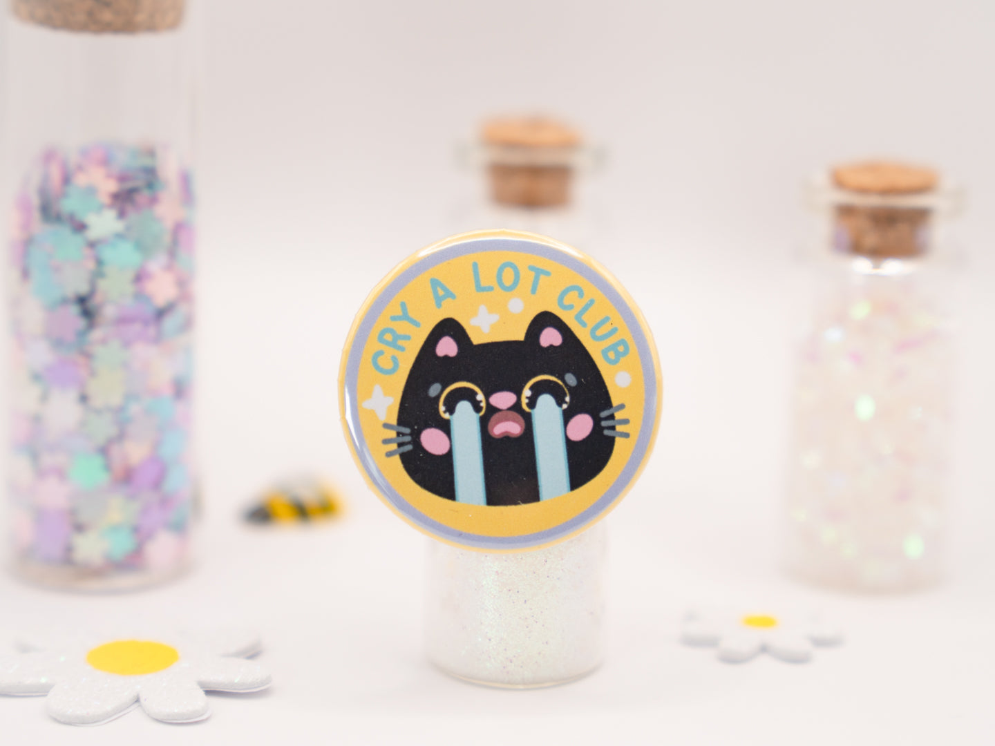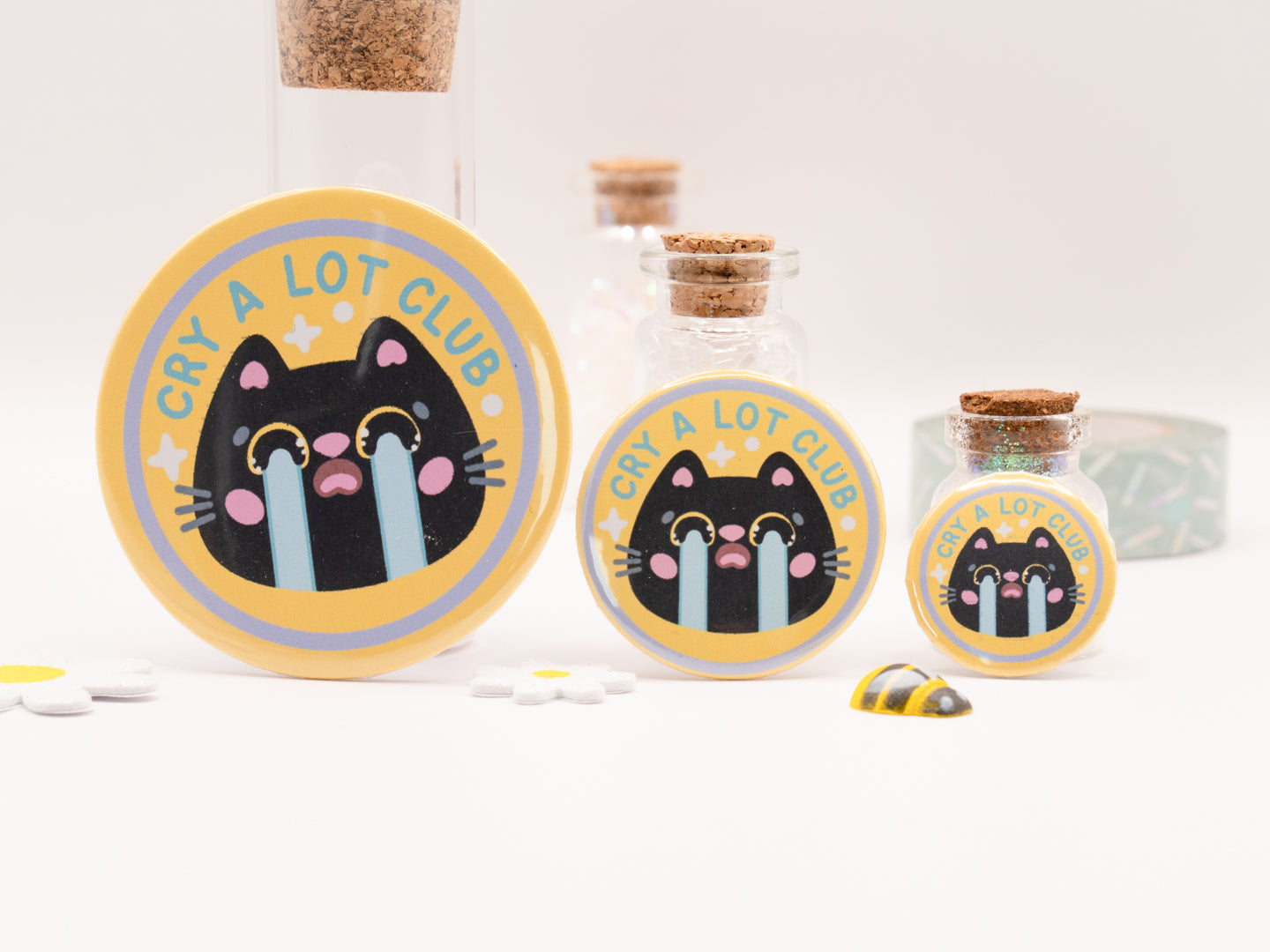 Badge rond avec un joli chat qui pleure parce qu'il est dans le Cry a Lot Club ! (veuillez le rejoindre plz 😭) Parfait pour décorer des sacs à dos, des vestes et des totebags ou comme cadeau !