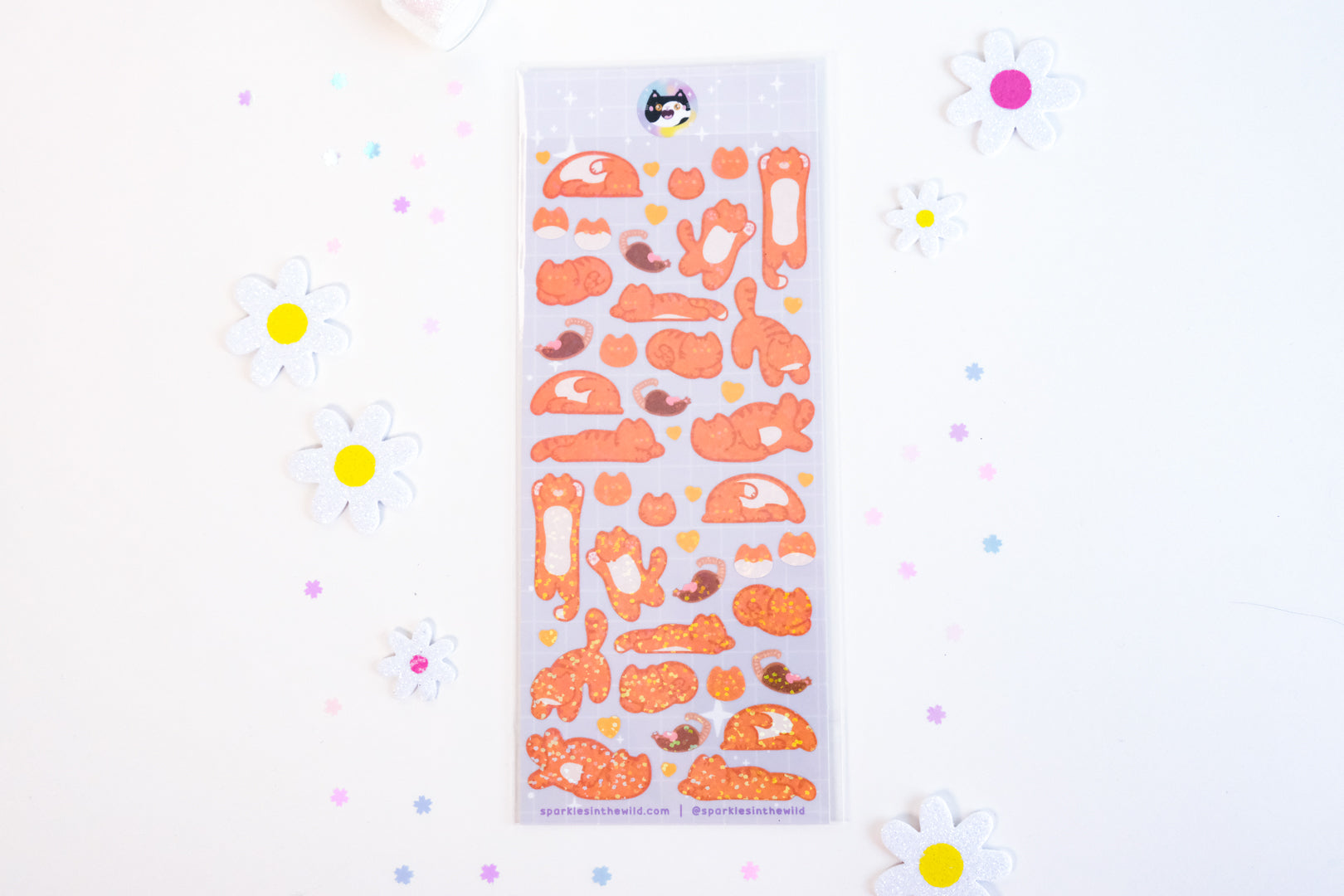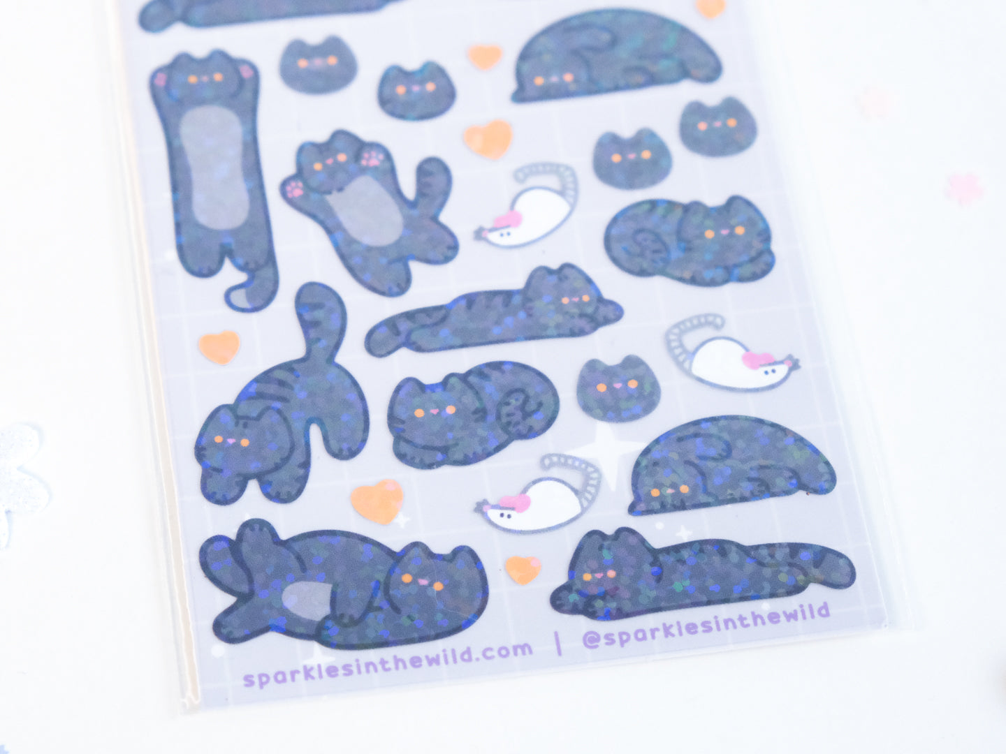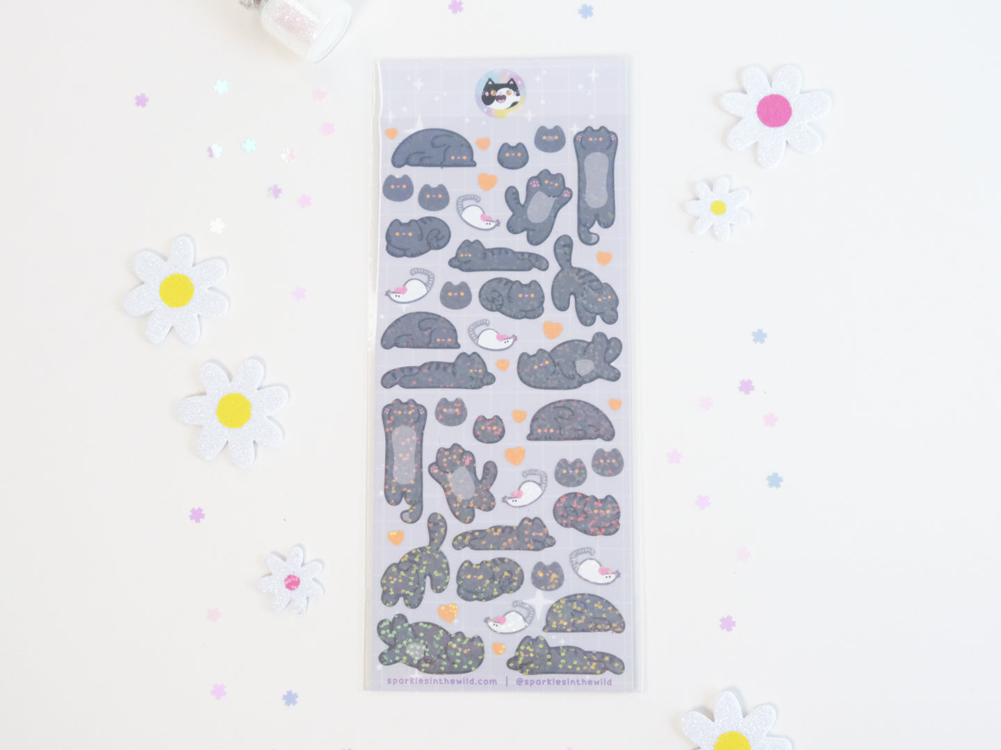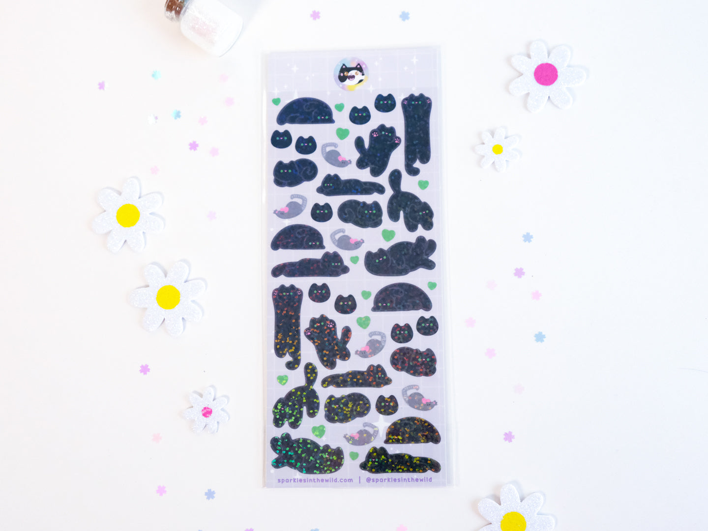 Feuille d'autocollants décoratifs chat pailleté ✨
