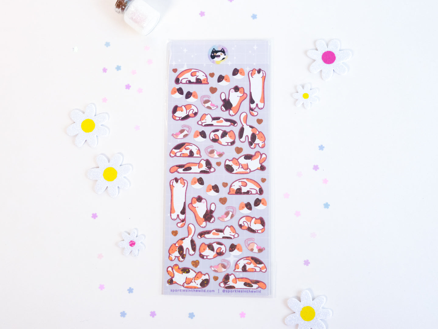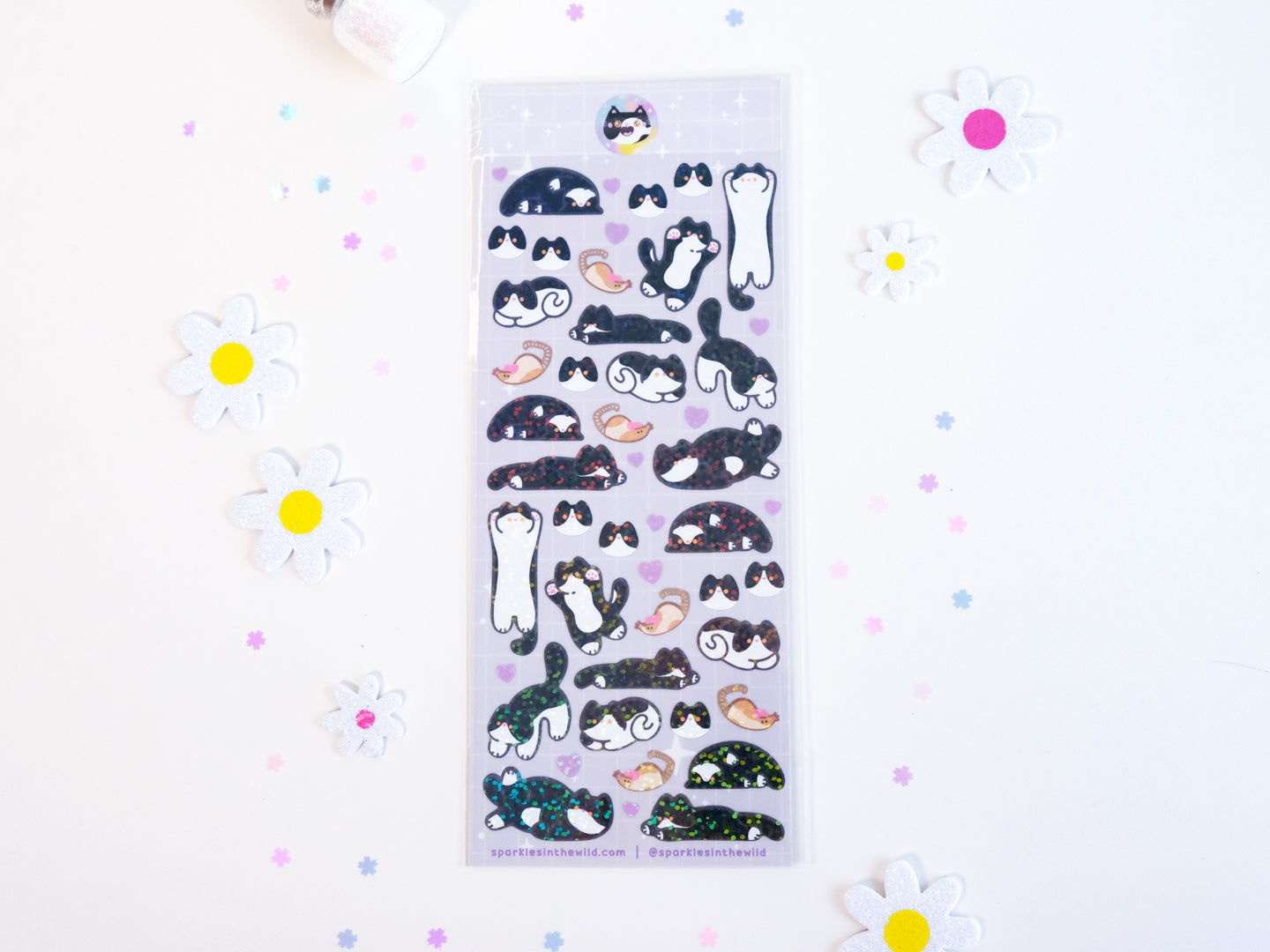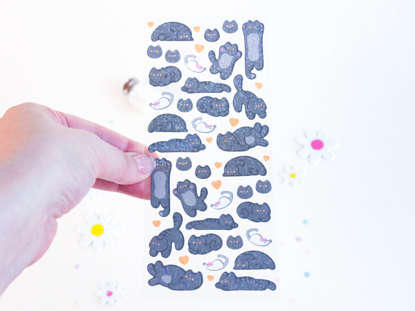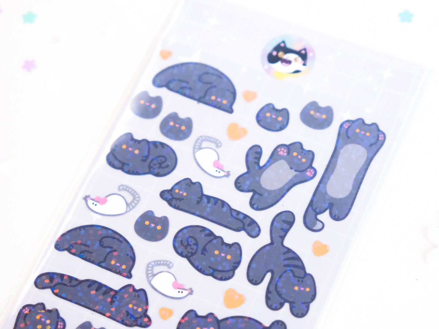 Feuille d'autocollants décoratifs chat pailleté ✨