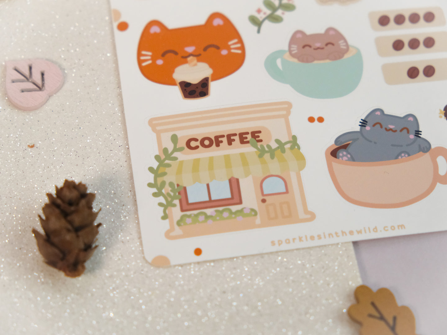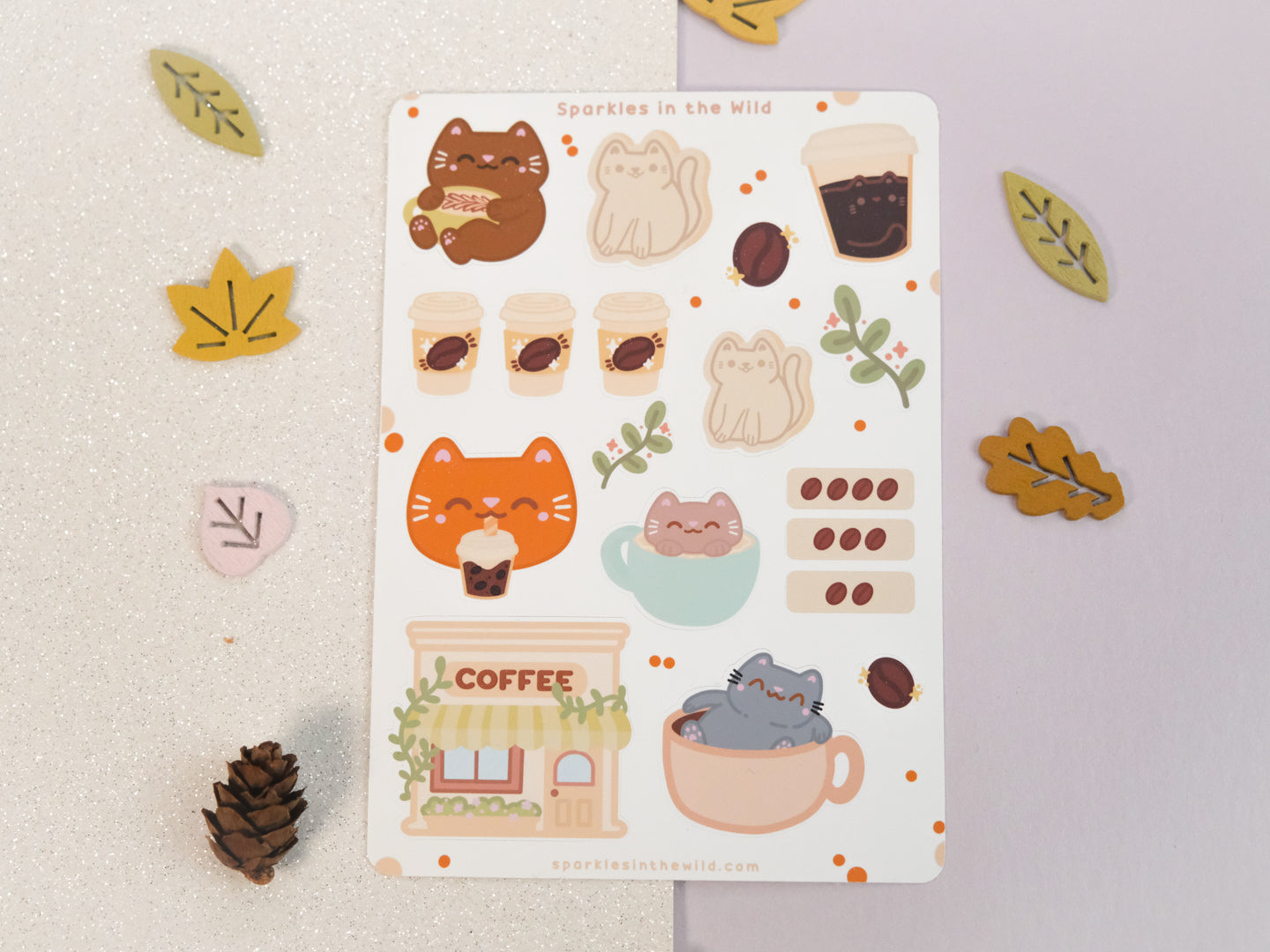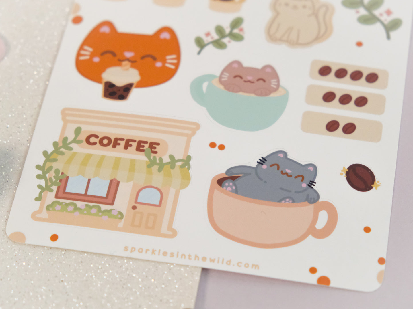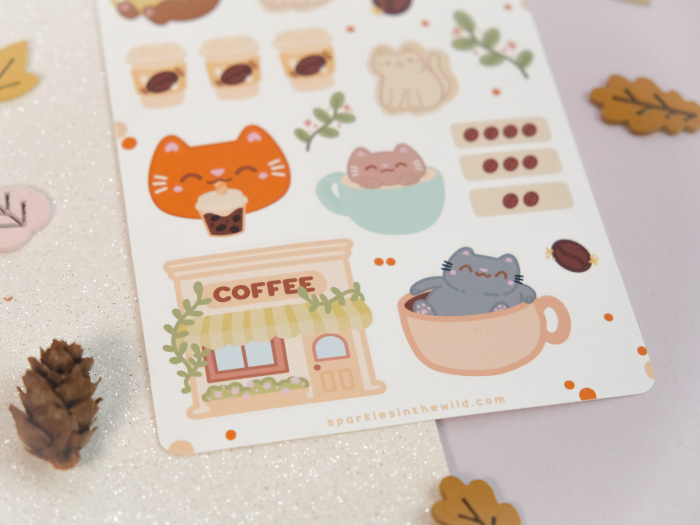 Feuille d'autocollants Café Mignon
