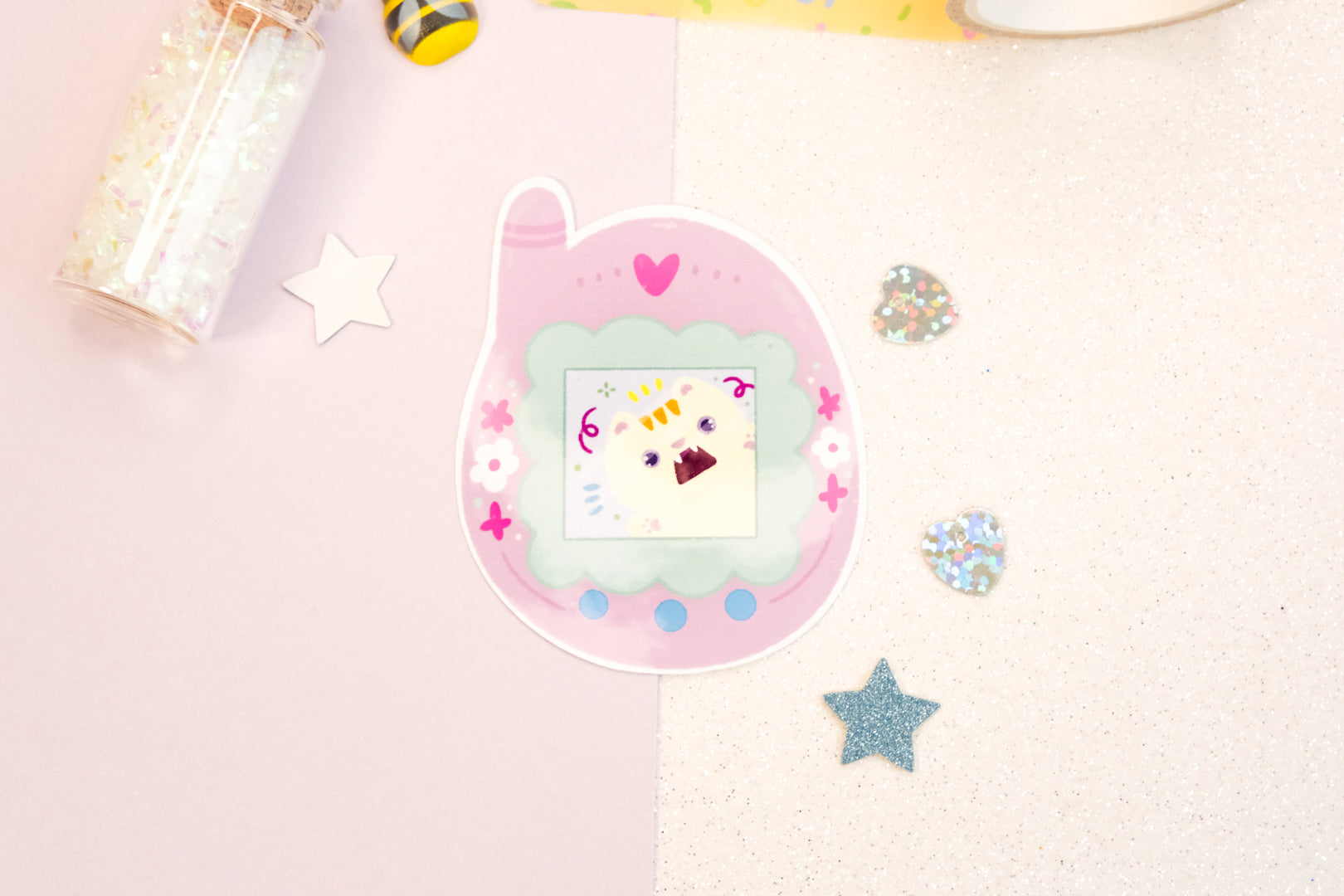 Retournons dans les années 90 avec des jouets rétro ! Comme cet autocollant mignon de chat Tamagotchi.
