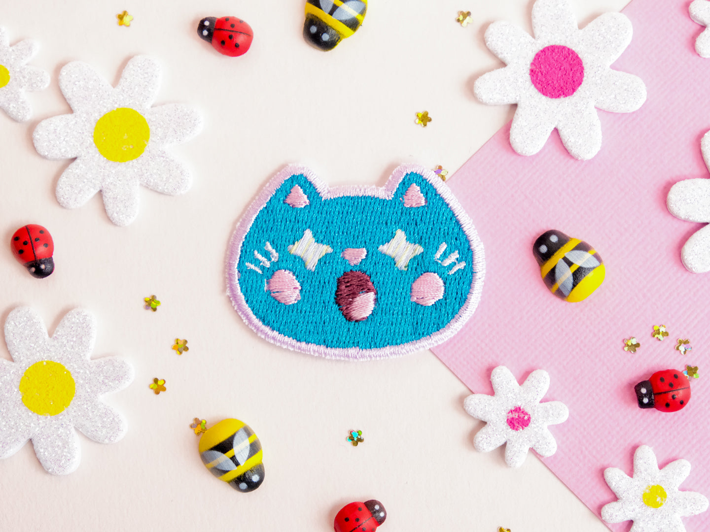Joli patch thermocollant chat bleu pour décorer vestes et jeans !