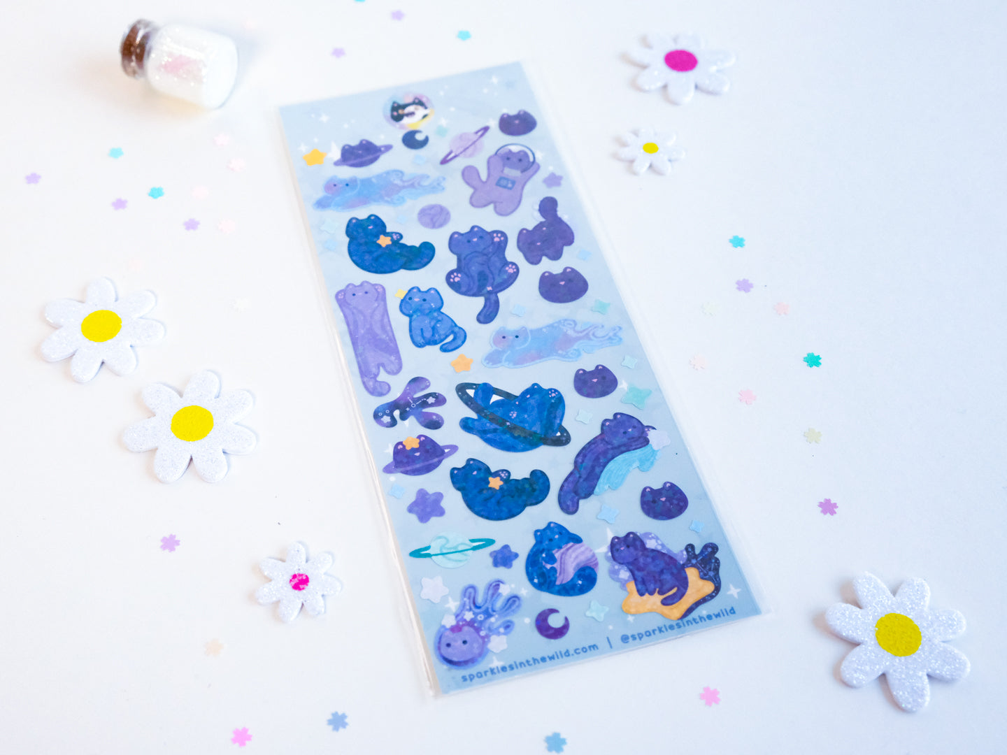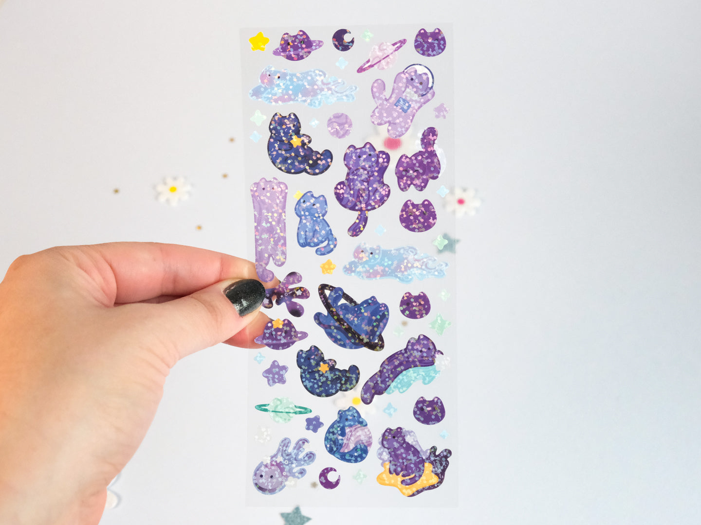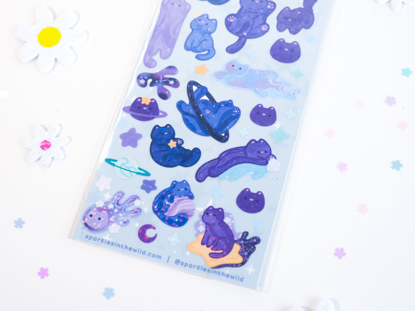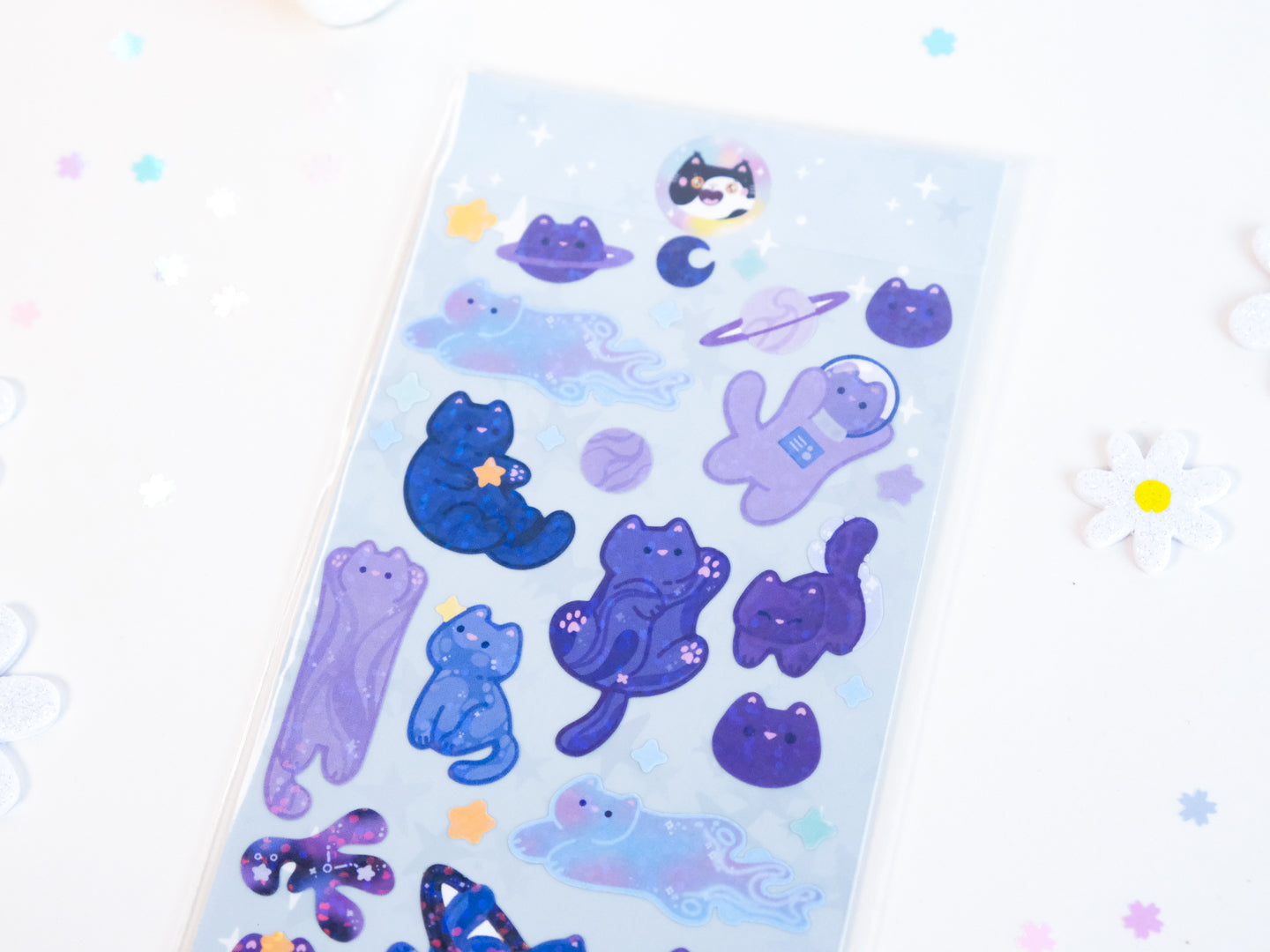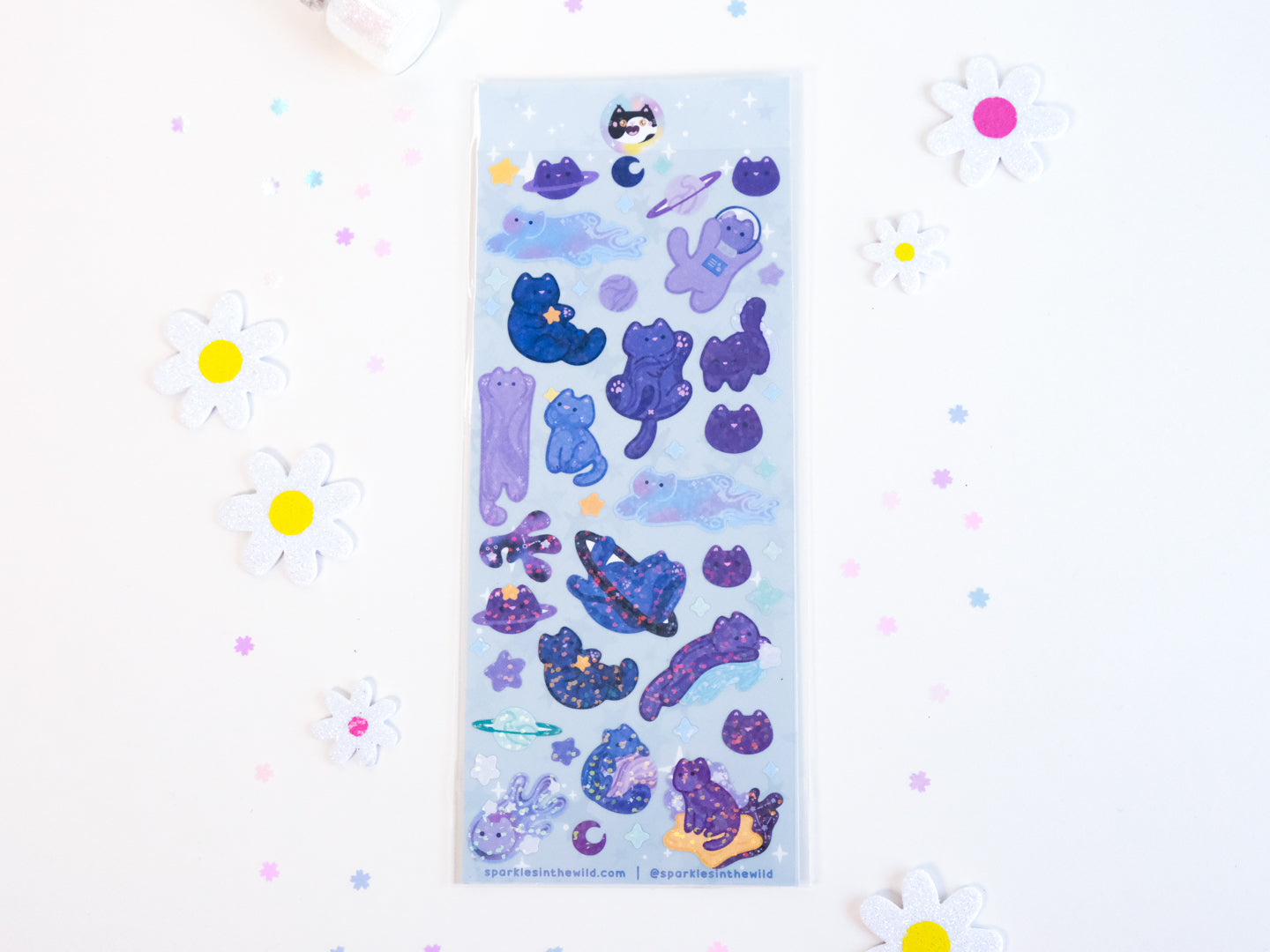Feuille d'autocollants décoratifs Chat Galaxie à paillettes ✨