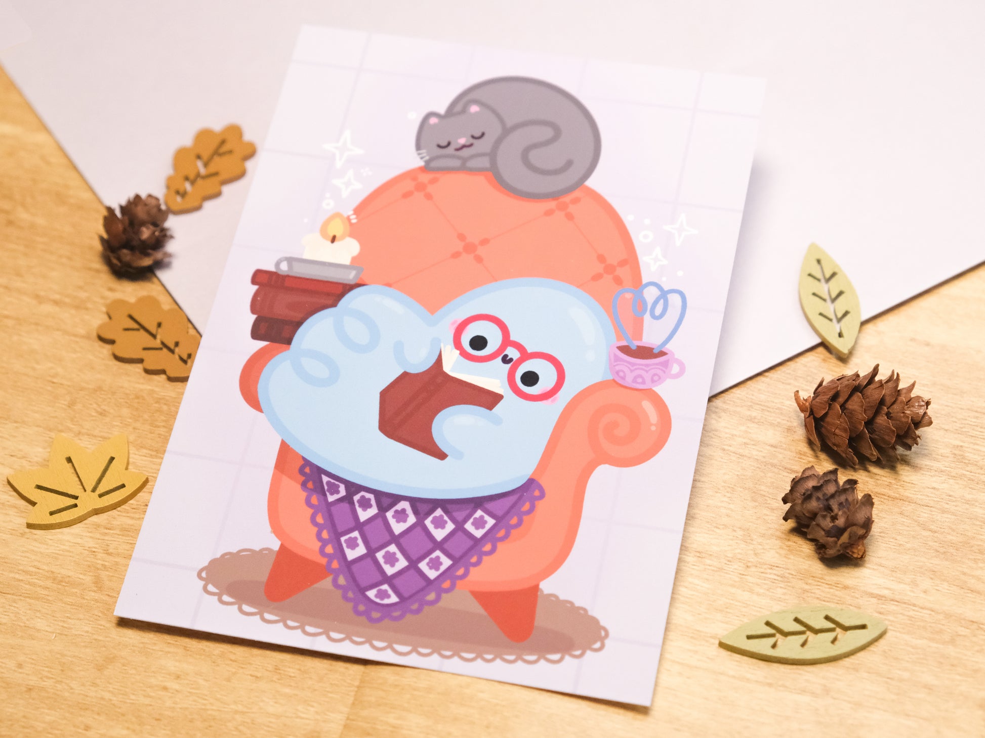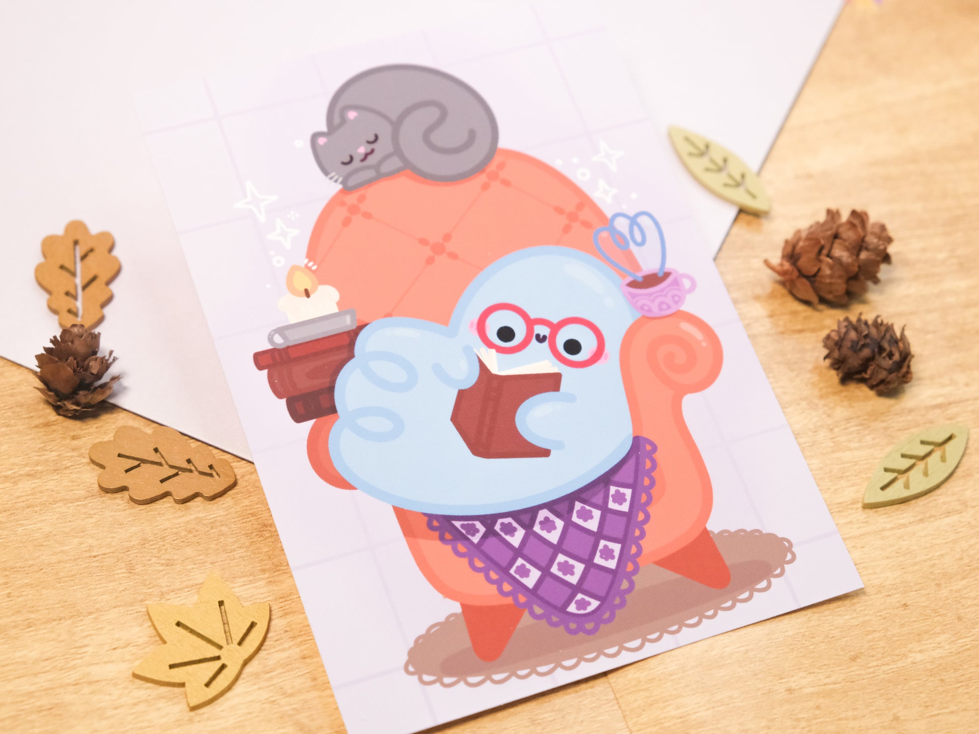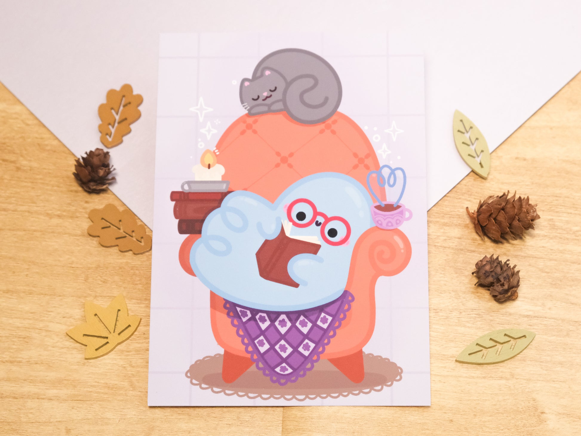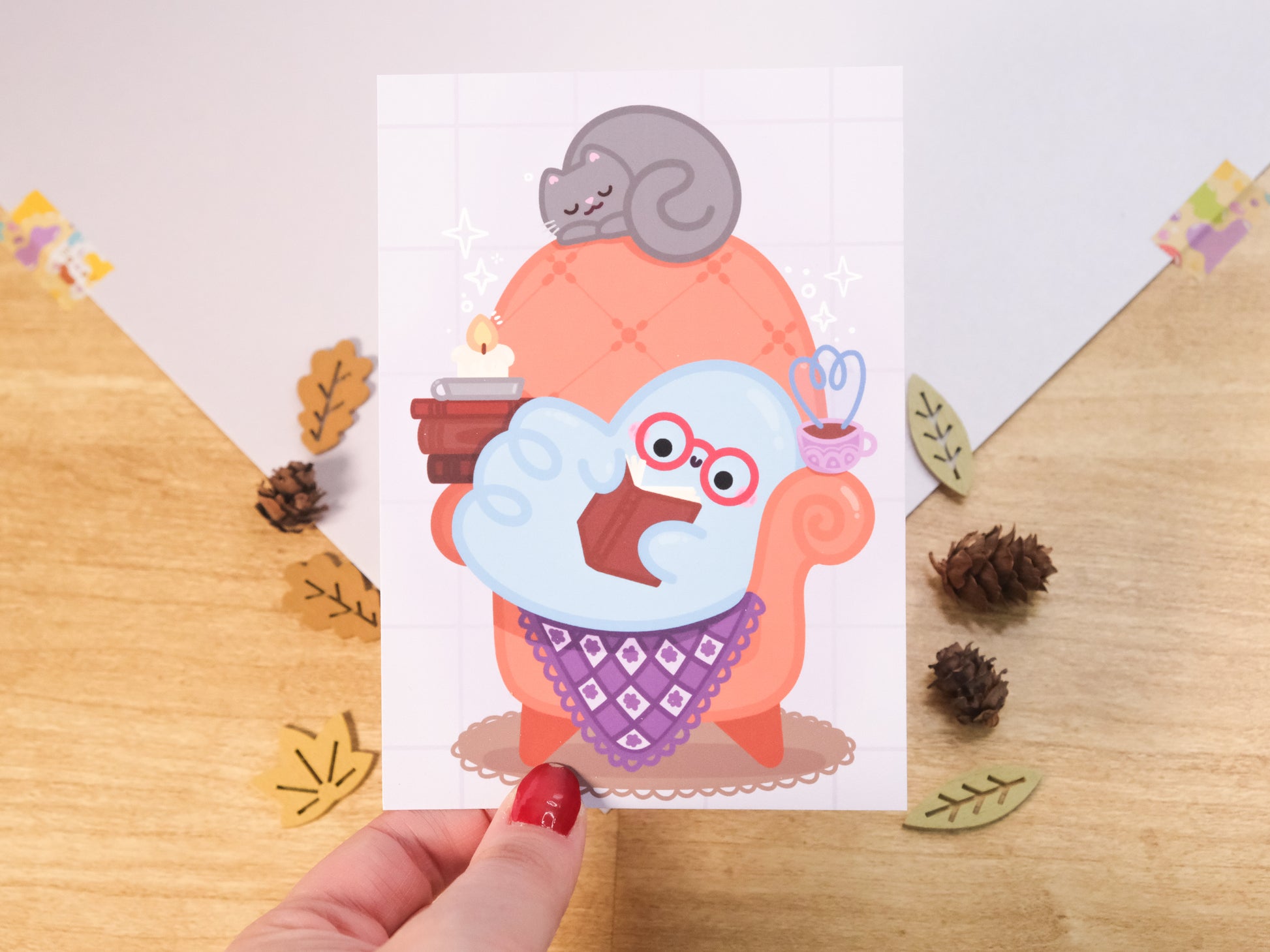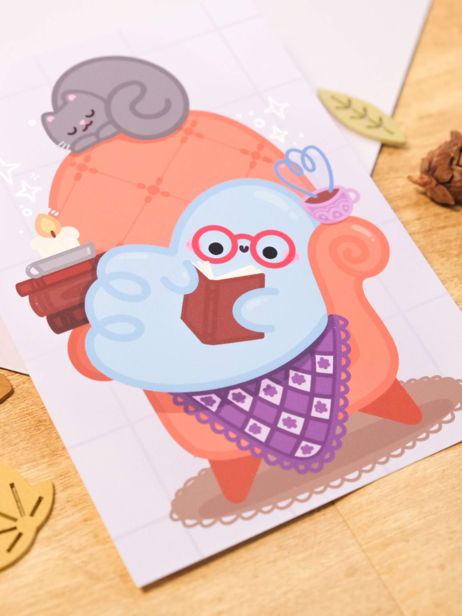 Carte format A6 illustrée d'un mignon fantôme et de son livre préféré ! Parfaite pour offrir ou décorer votre chambre. Les couleurs peuvent légèrement varier en fonction des paramètres de votre écran.