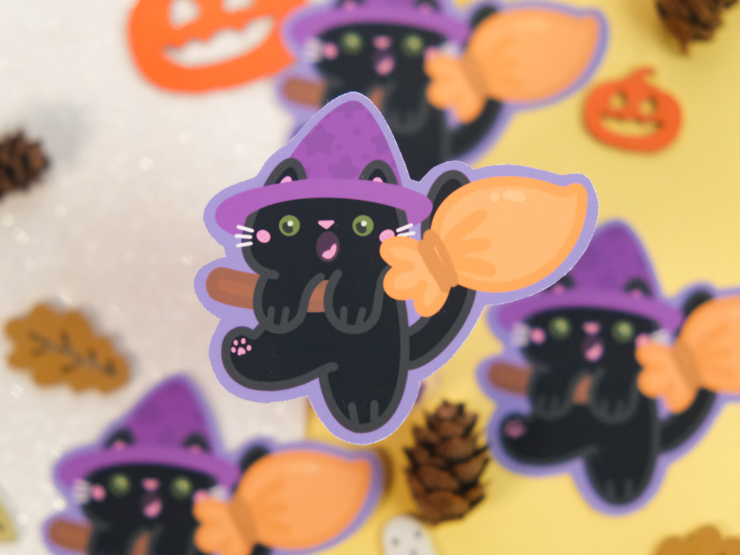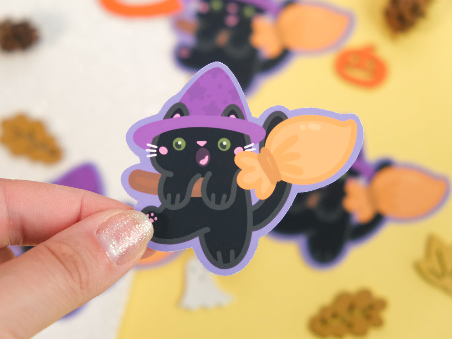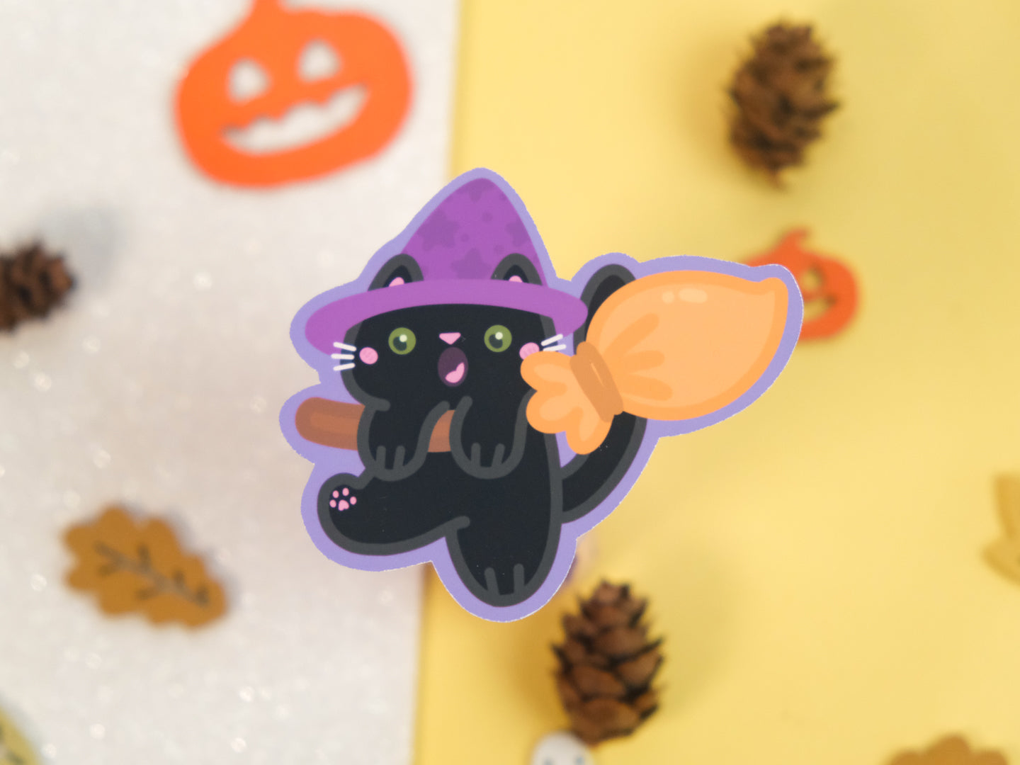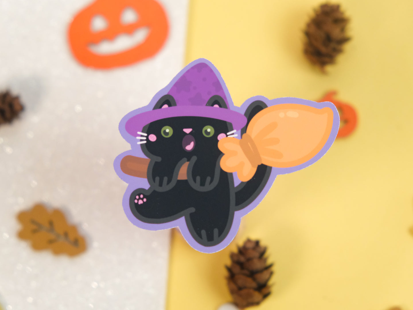 Ce sticker représentant un chat-sorcier maladroit est parfait pour personnaliser des cahiers, agendas, ordinateurs portables, téléphones et bien plus encore. La conception soignée et l'adhésif de qualité garantissent que le sticker reste en place tout en conservant son éclat charmant.