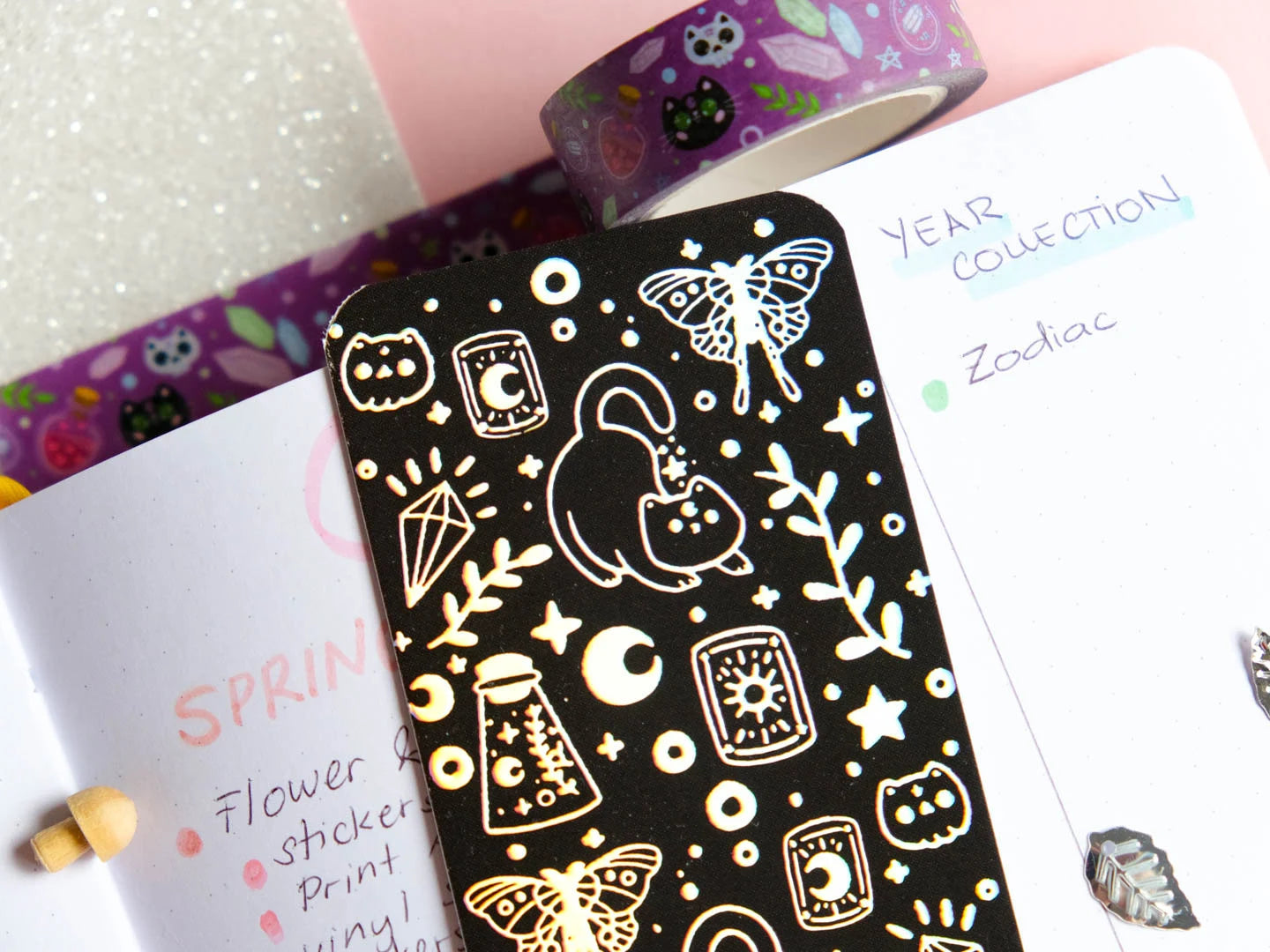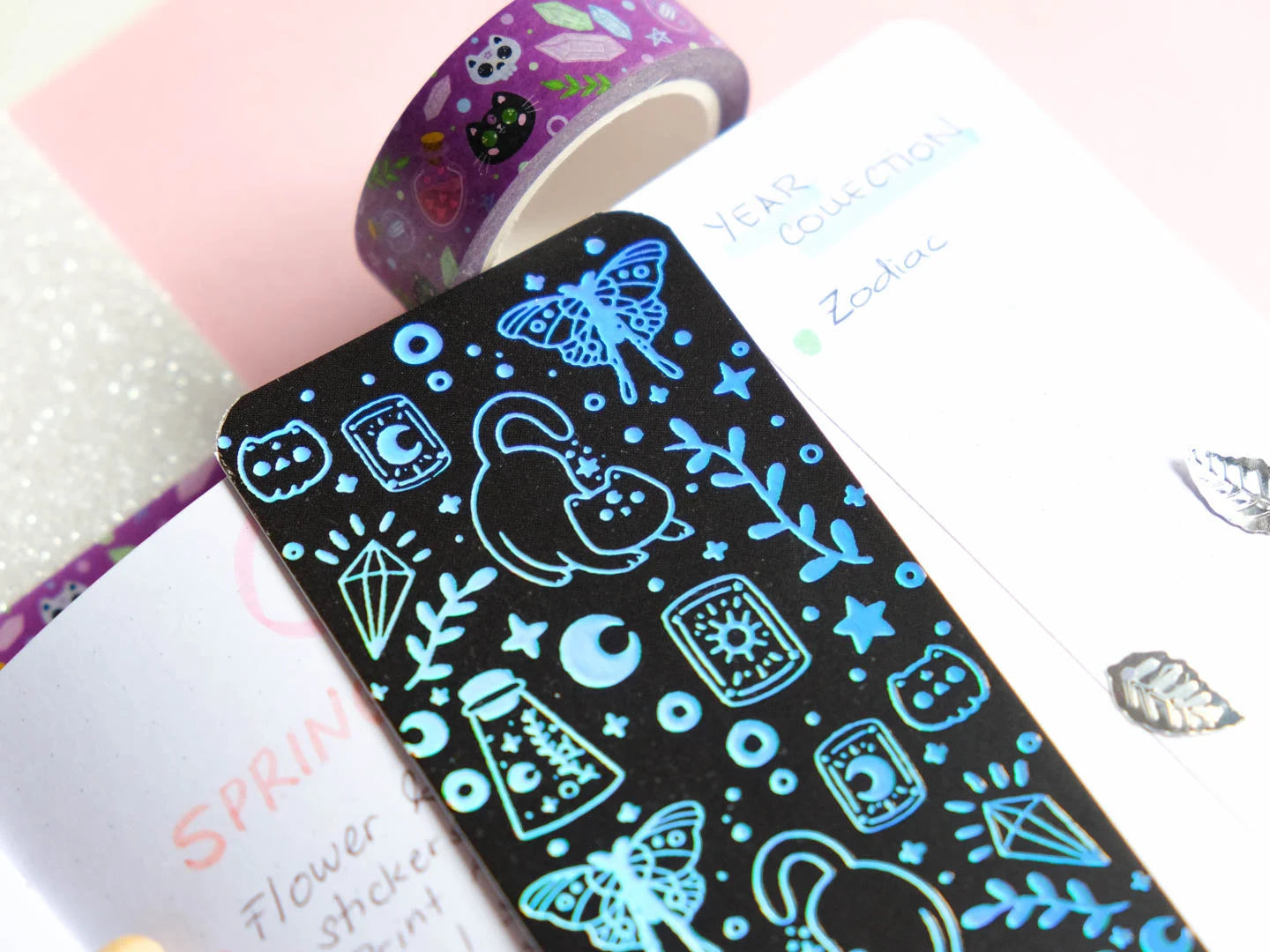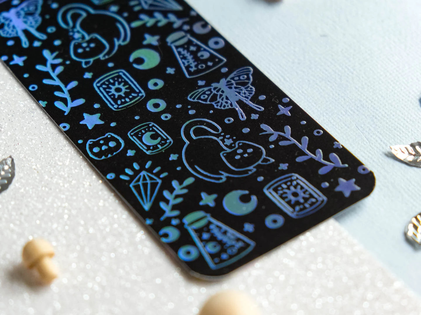 Plongez dans le monde mystérieux de la lecture avec ce marque-page holographique céleste qui dégage des vibrations envoûtantes avec des chats et des cartes de tarot. Fusion magique entre la beauté du cosmos et l'aura mystique des sorcières, ce marque-page vous emmène dans un voyage littéraire unique.
