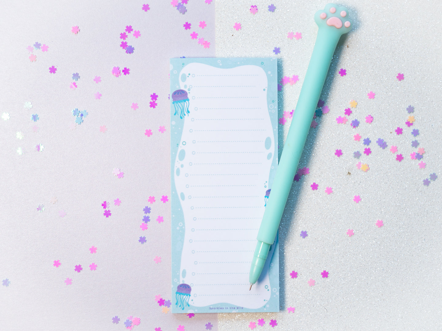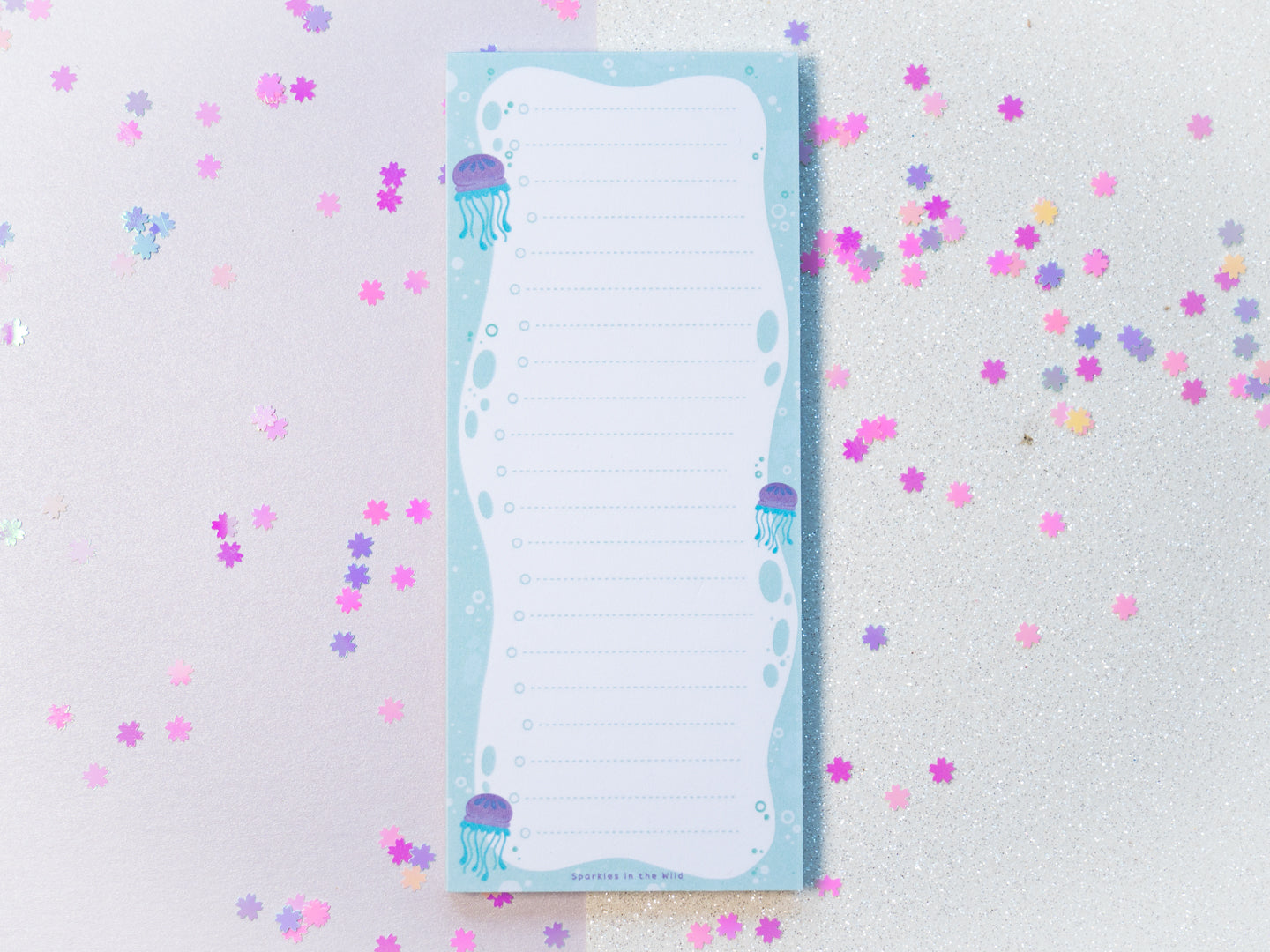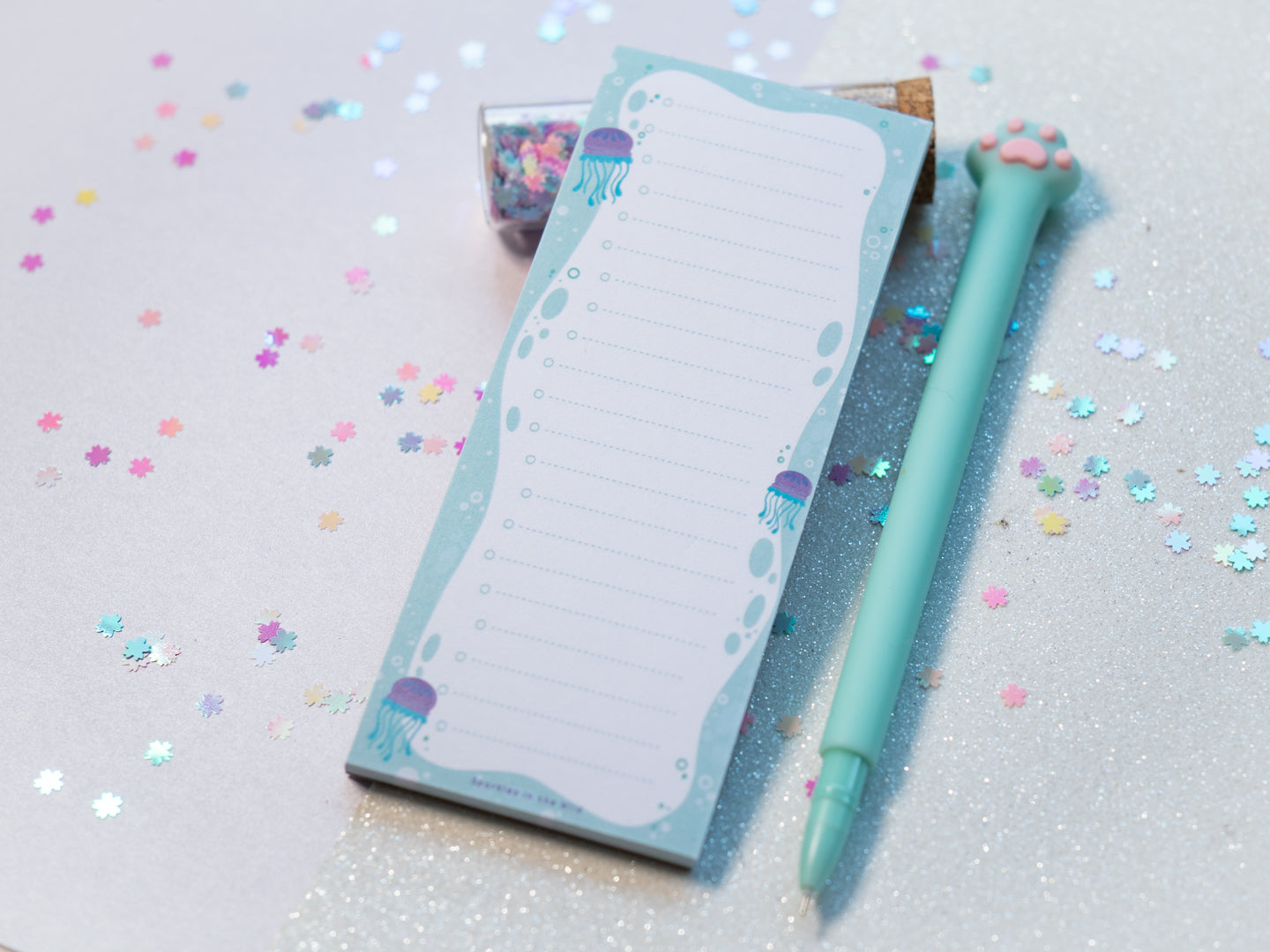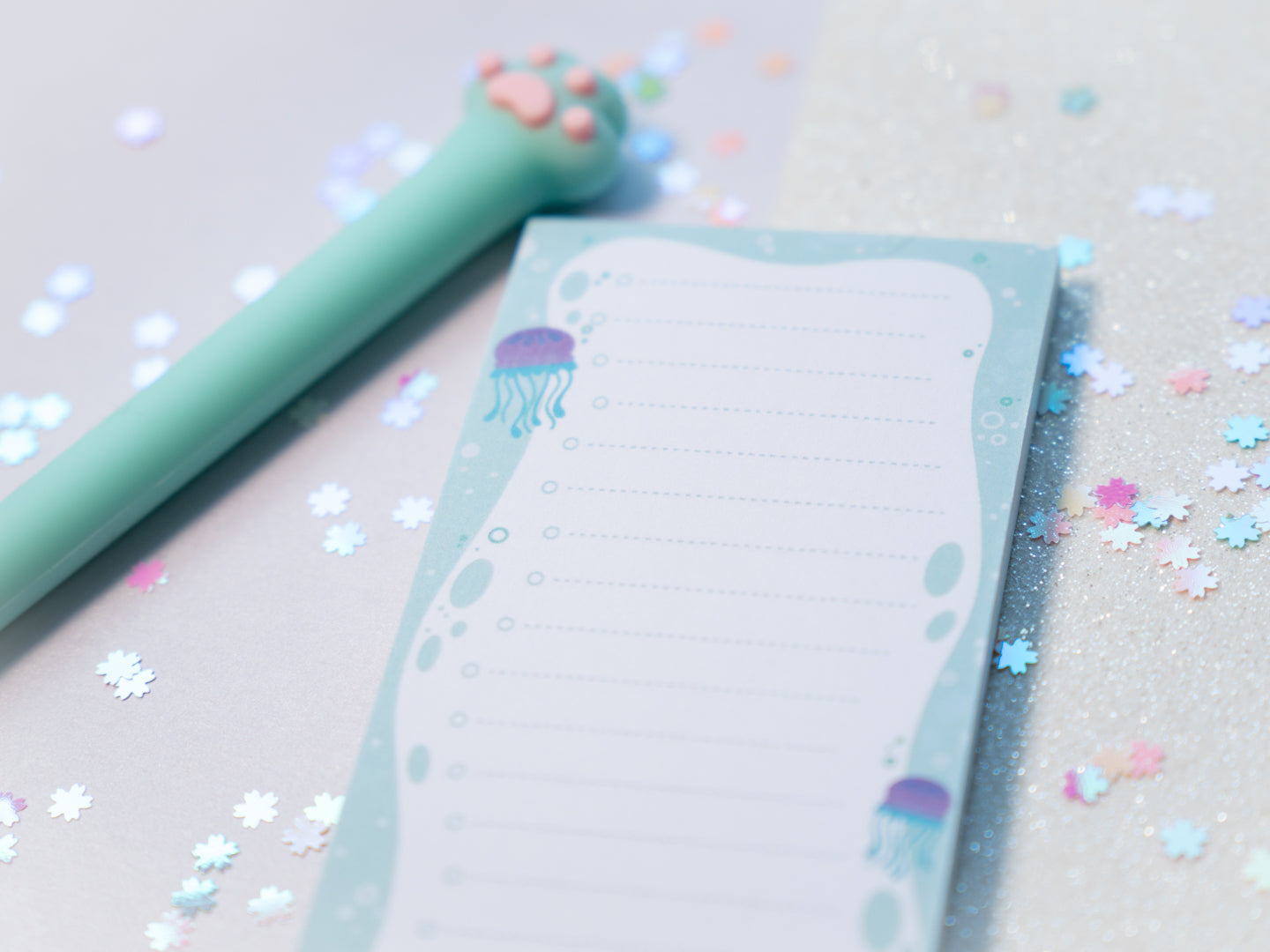 Bloc-notes liste avec petites méduses pour les amateurs d'océan et de kawaii avec 50 feuilles détachables pour prendre des notes.