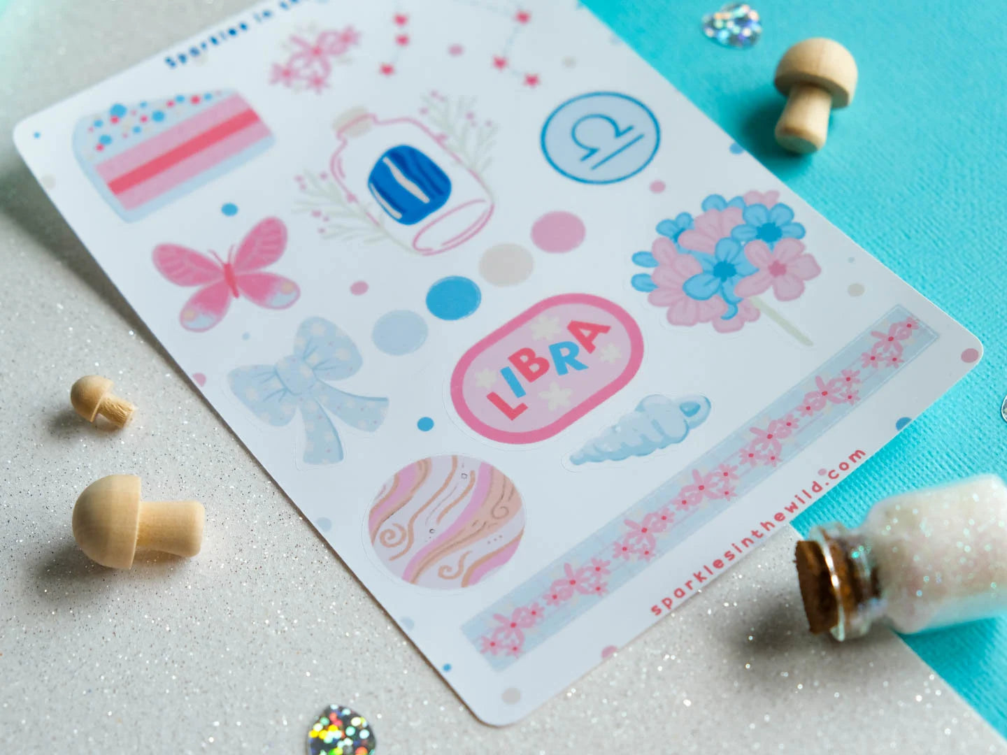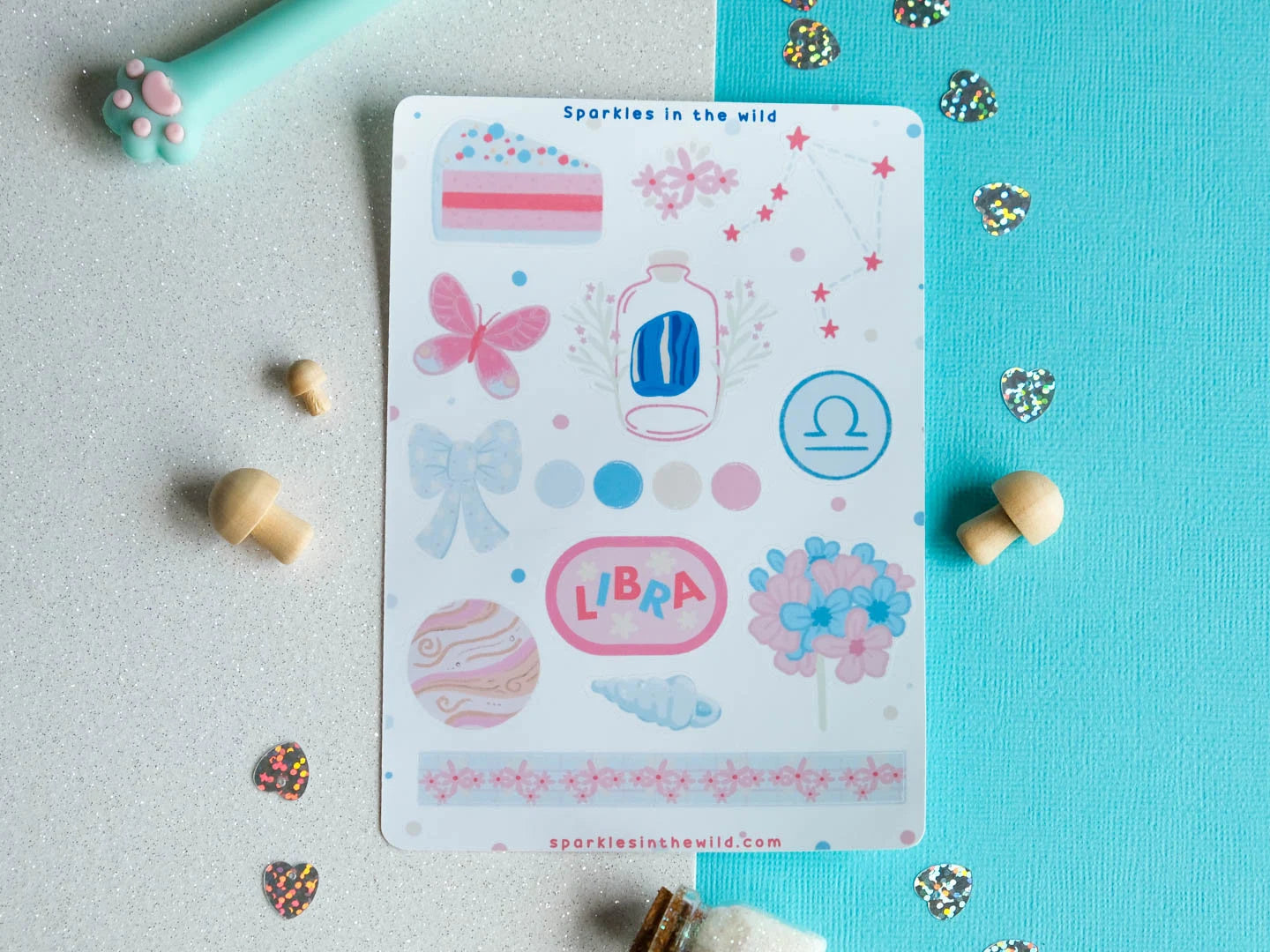 Cette feuille d'autocollants comprend une variété de motifs inspirés de l'astrologie, mettant en vedette les symboles de la Balance, le signe du zodiaque pour les personnes nées entre le 23 septembre et le 22 octobre.