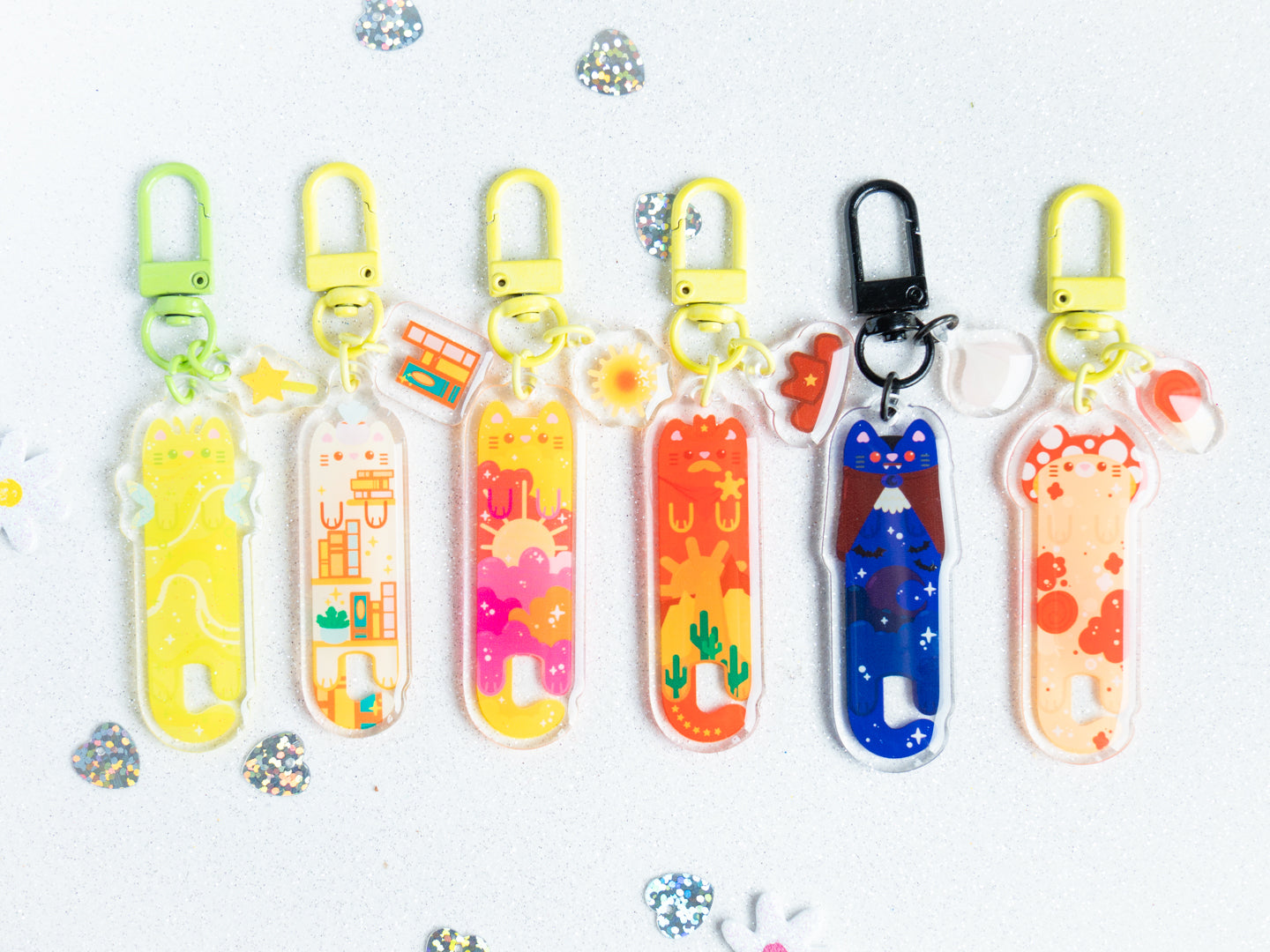 Sachet Mystère de 1 Porte-clés Chat Kawaii en Acrylique avec CHARME - Série Verte 💚
