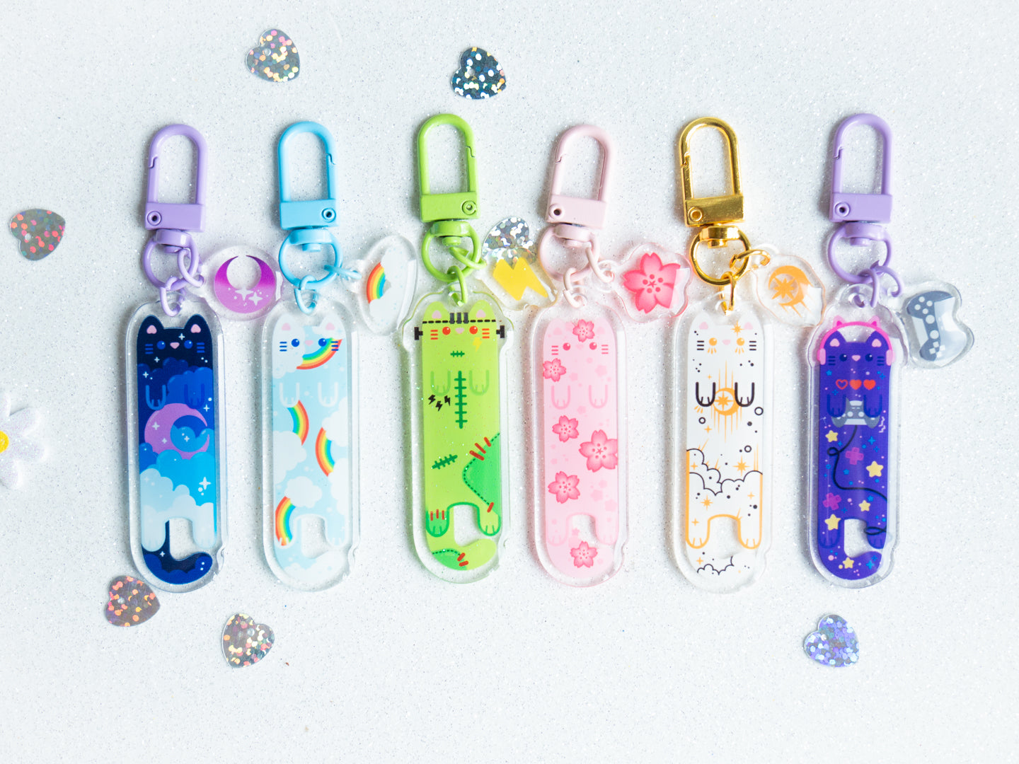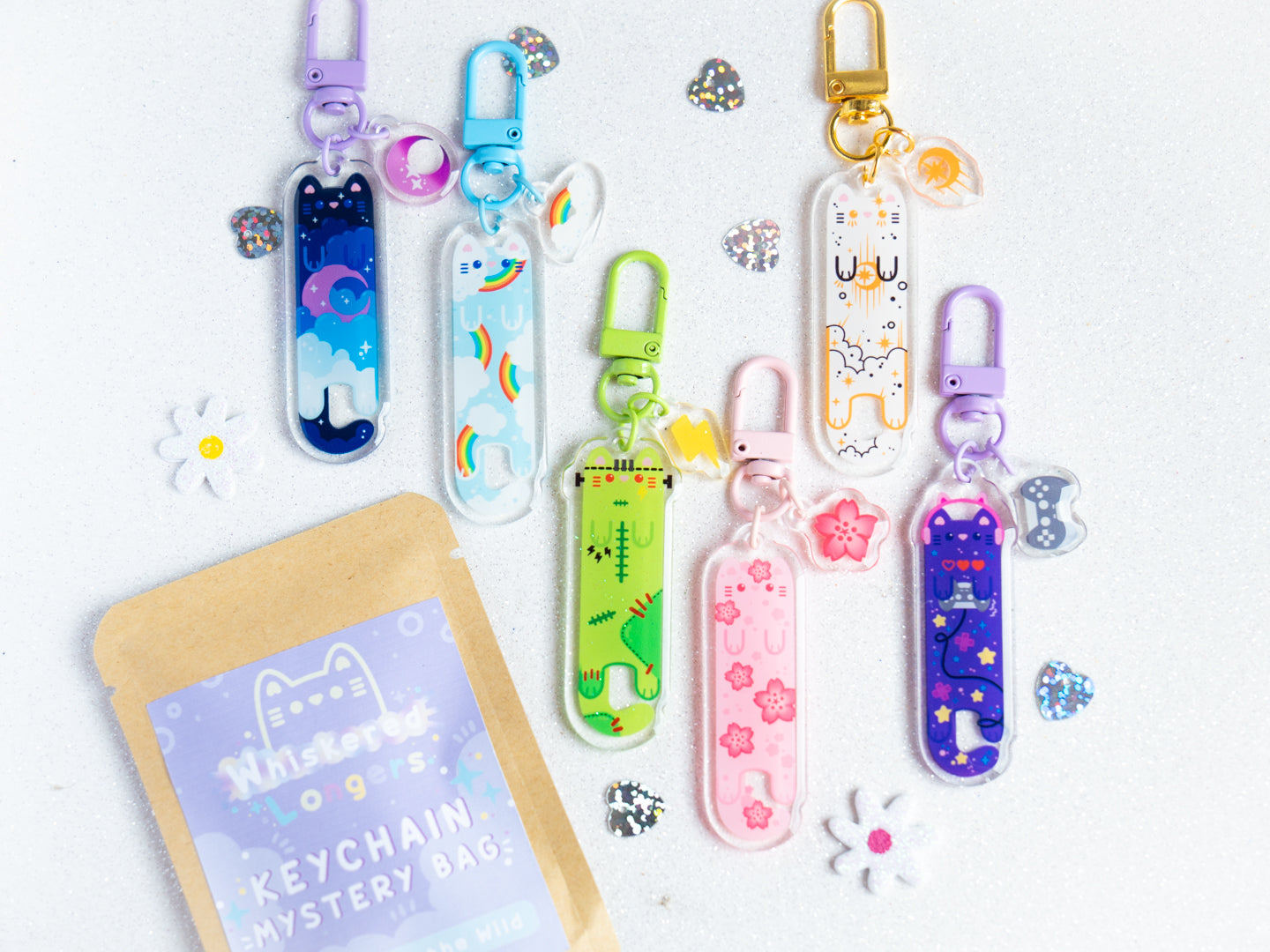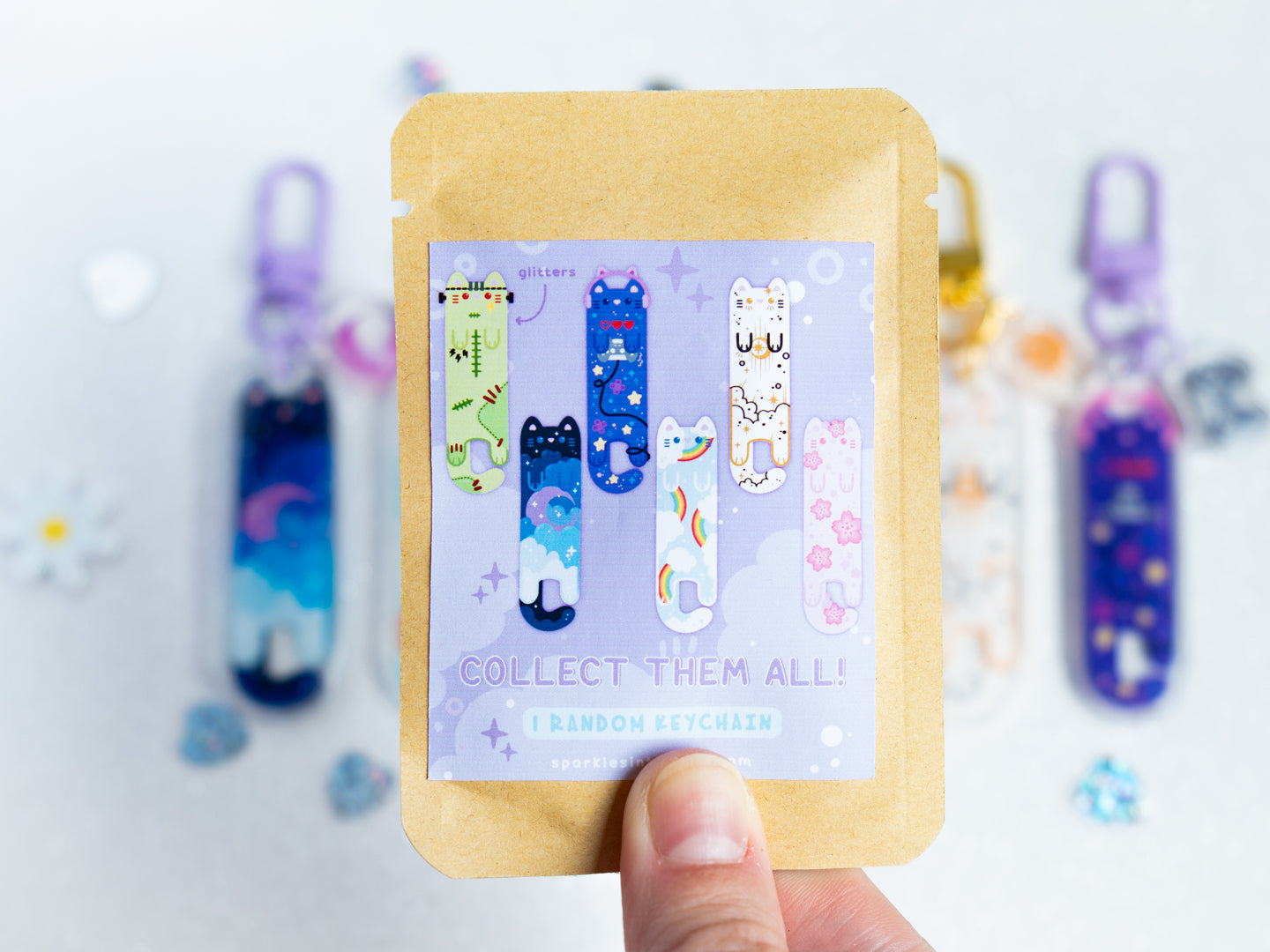 Sachet Mystère de 1 Porte-clés Chat Acrylique Kawaii avec CHARME - Série Violette 💜