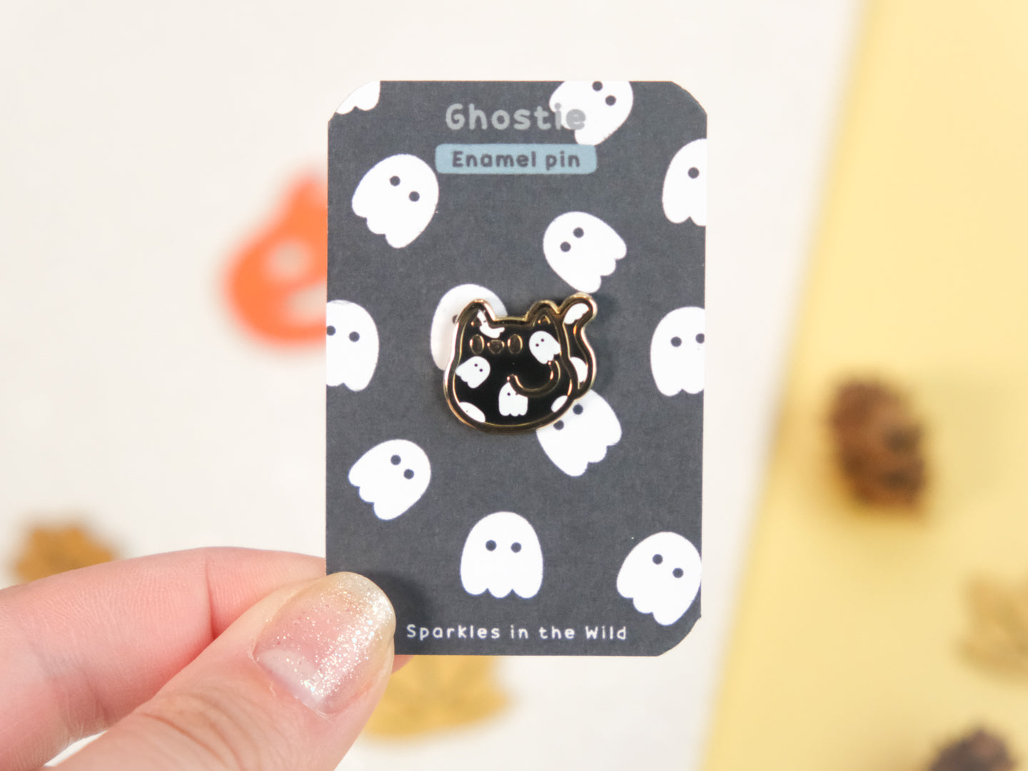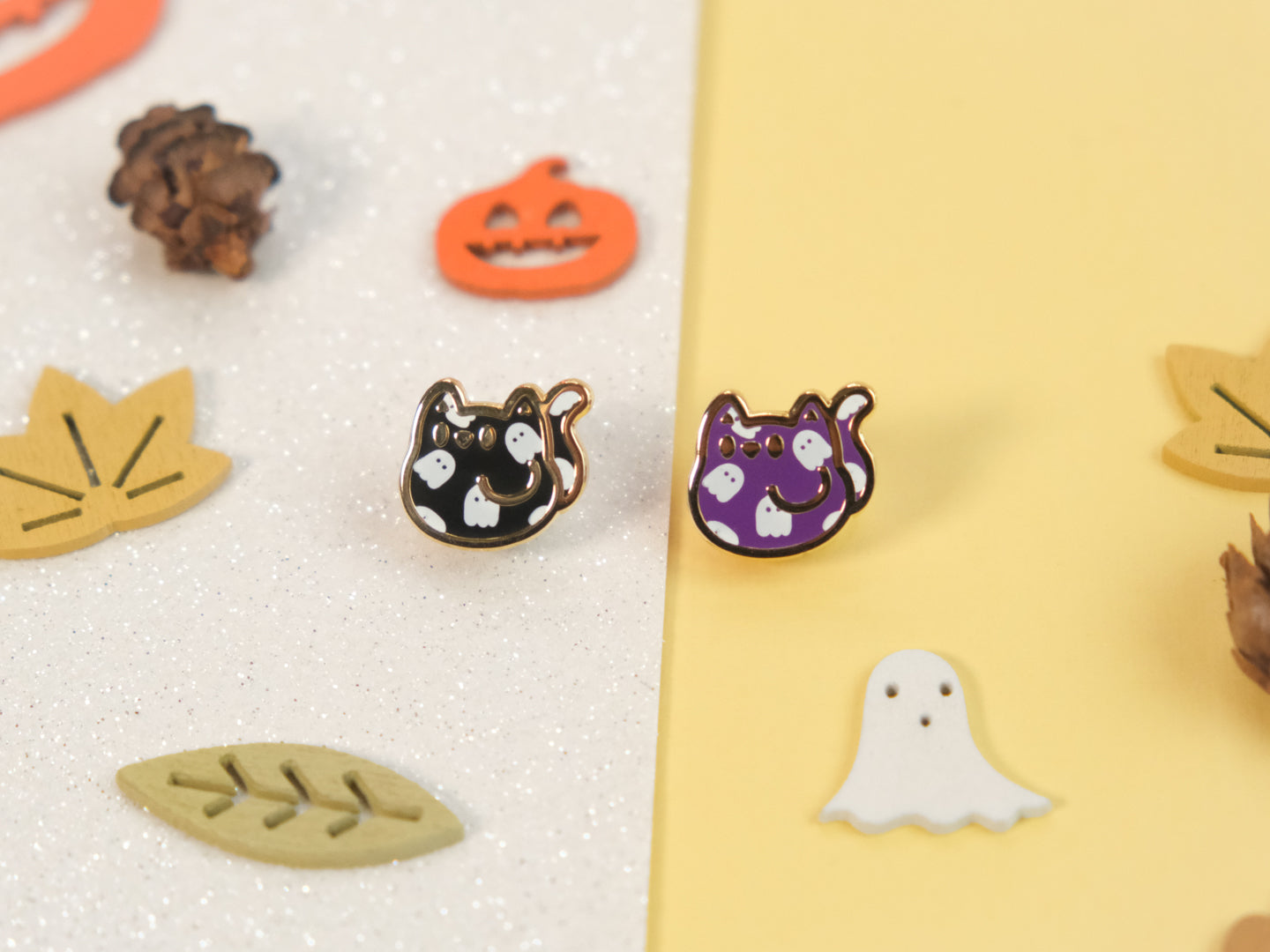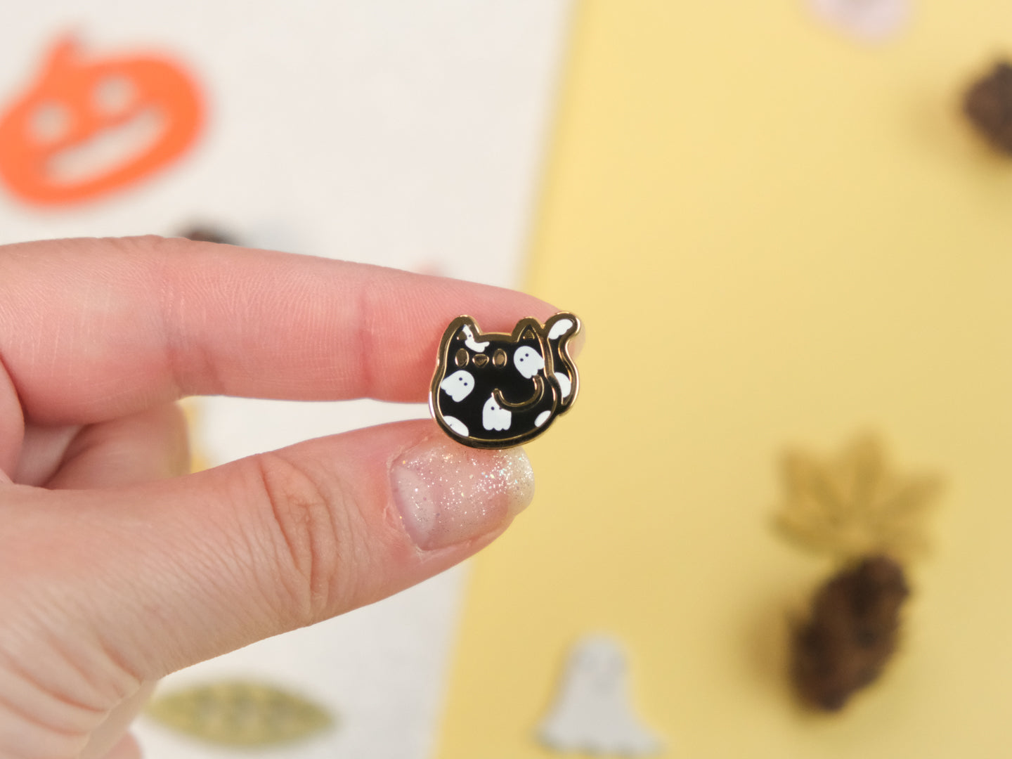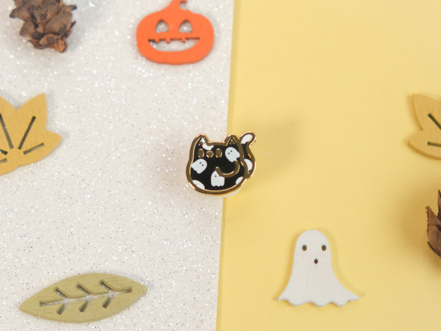 Ce mini pins en émail en forme de chat mignon est hantée par un fantôme 😱 parfaite pour Halloween ou comme broche de remplissage de tableau