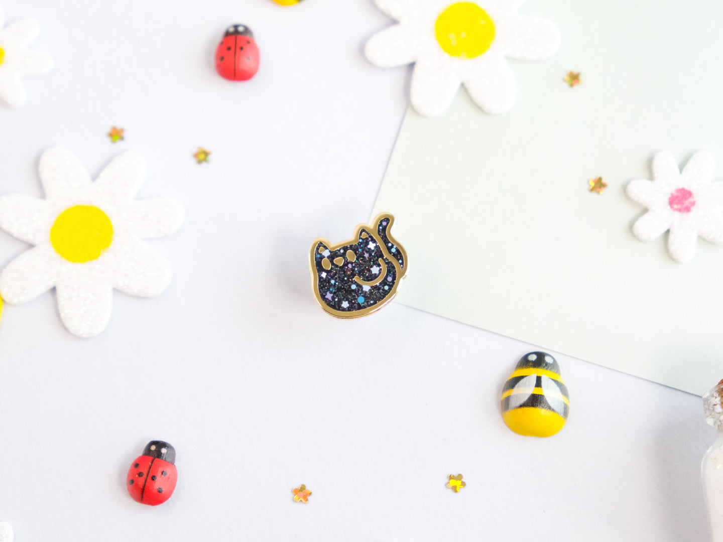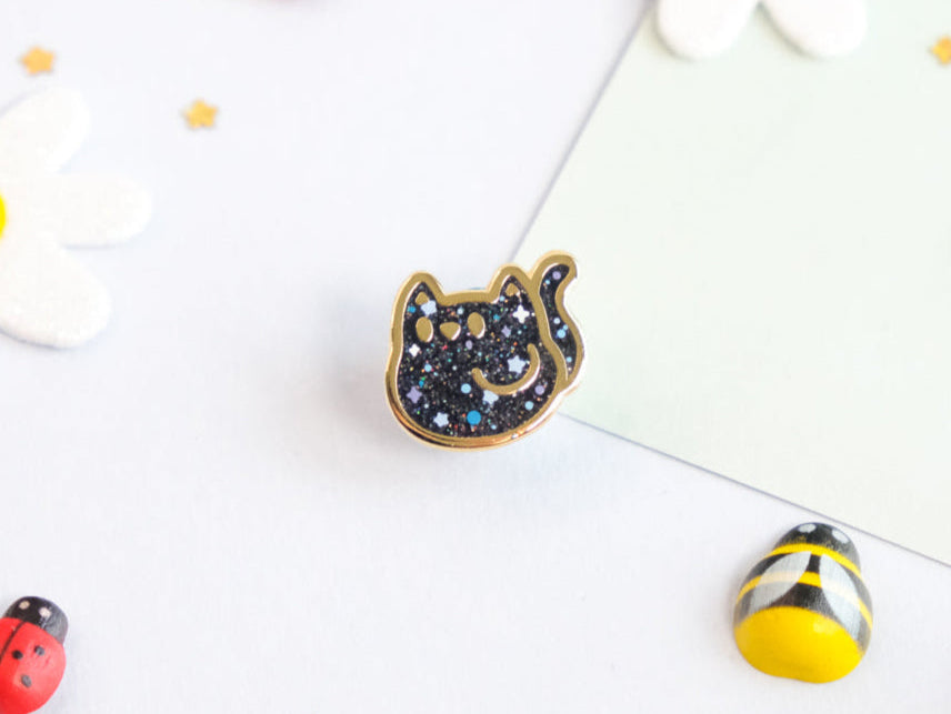 Mini pins en émail représentant un chat mignon poussière d'étoile et galaxie ! parfait comme pins de remplissage de tableau ☄️