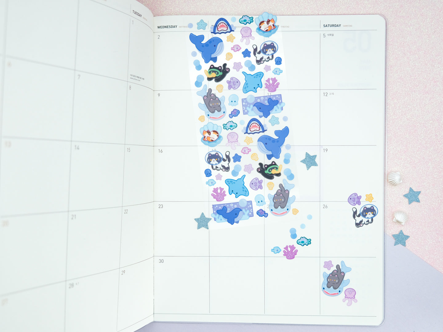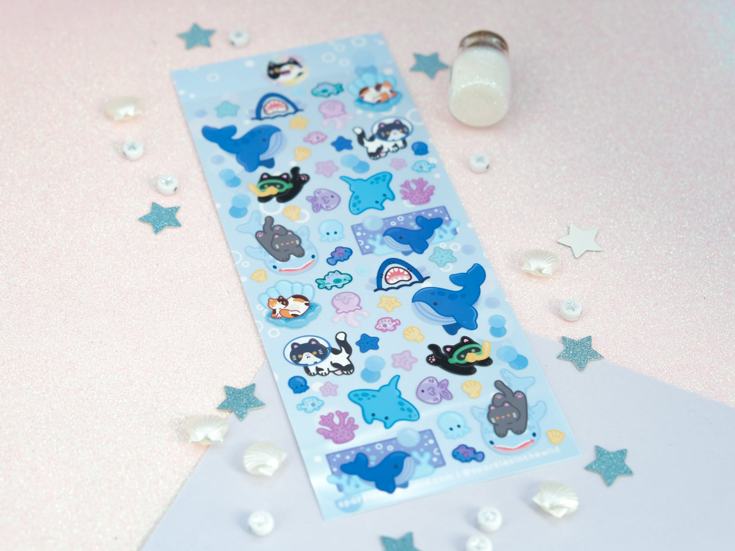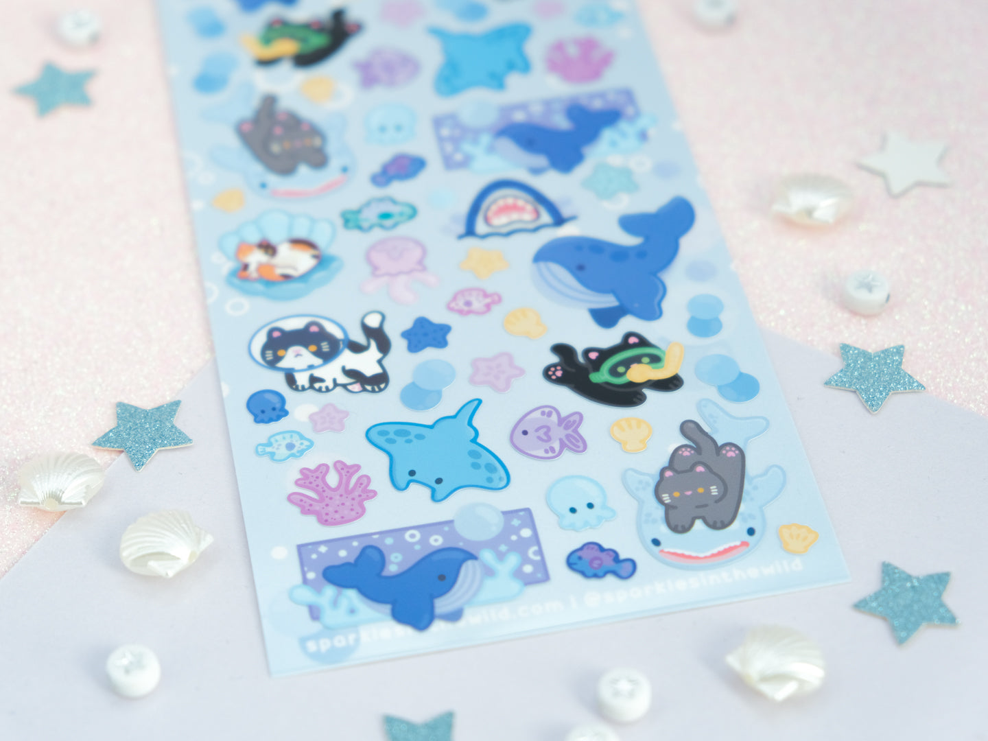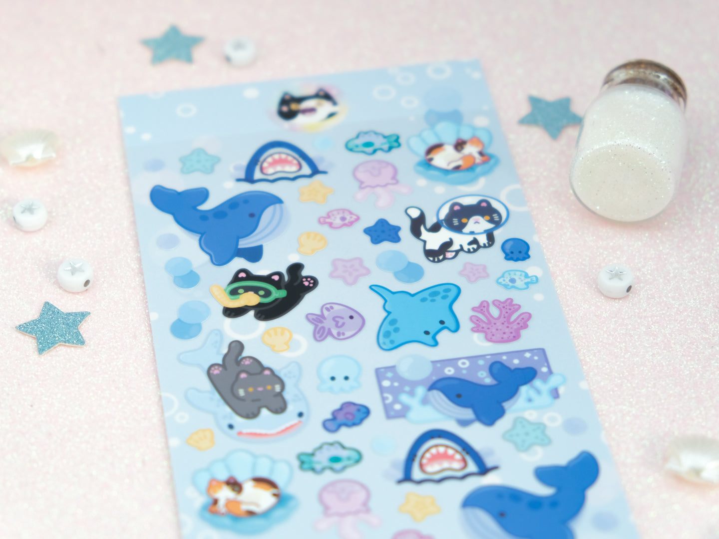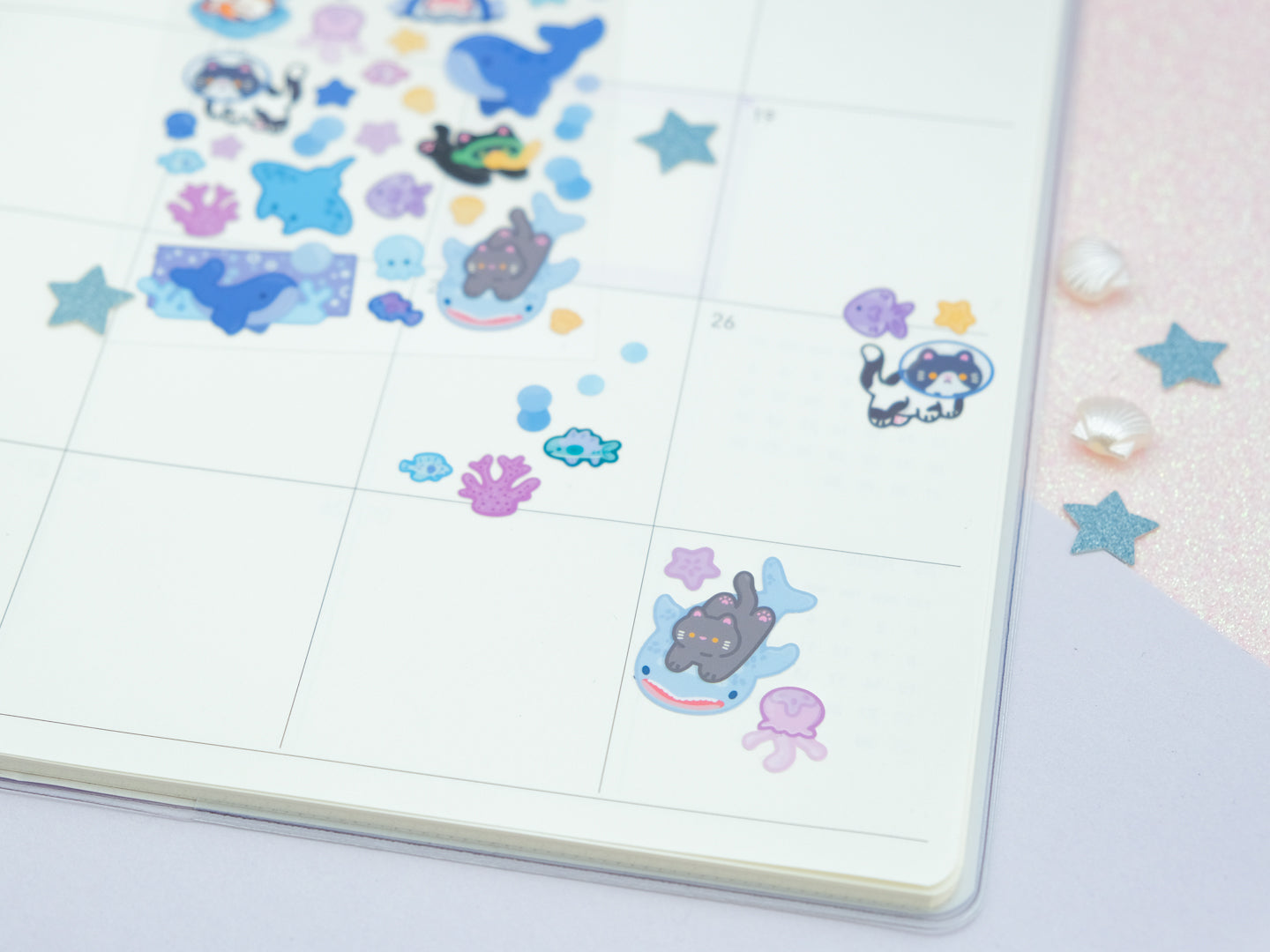 Bleu, mignon et rempli de plus de 50 chats et créatures marines. Inspiré par la magie de la papeterie coréenne. Parfait pour tenir un journal, décorer ou simplement ajouter un peu de "miaou" à votre journée.