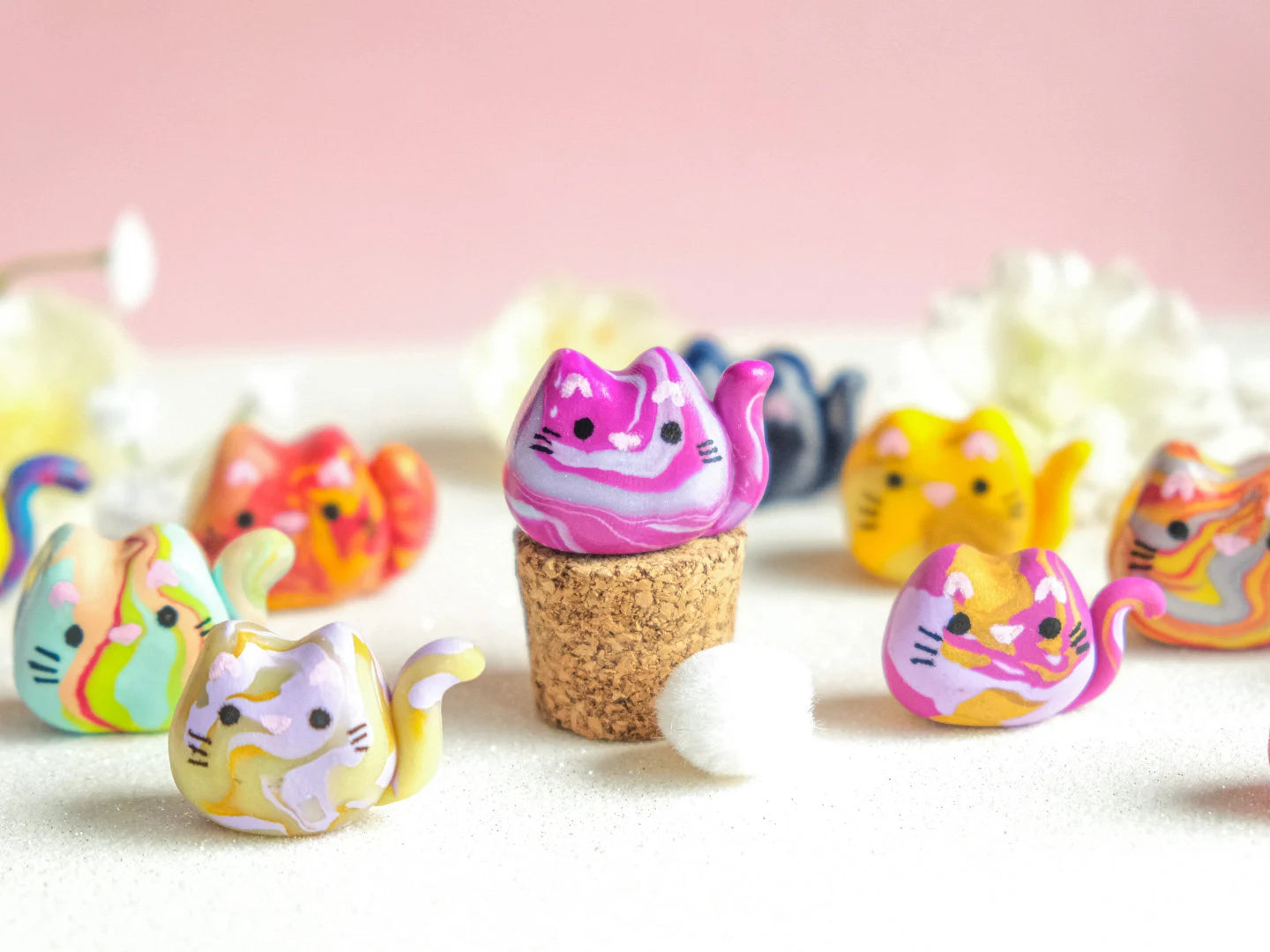 Pawket - Figurine de chat en argile polymère fabriquée à la main