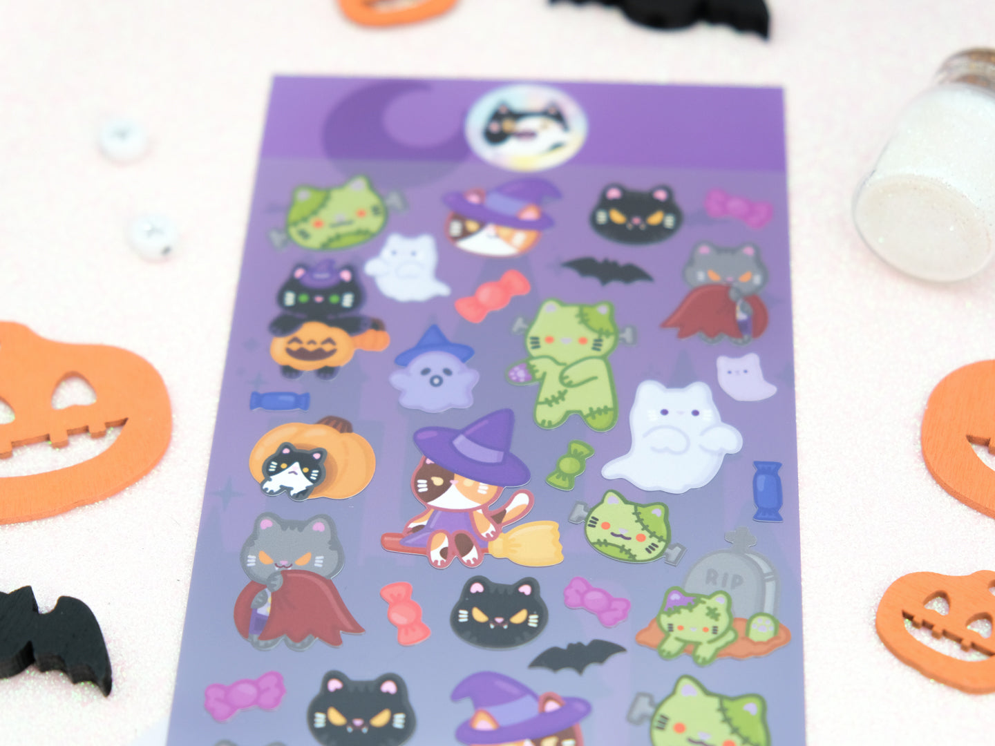 Feuille d'autocollants décoratifs sur le thème des chats et créatures effrayants 🎃