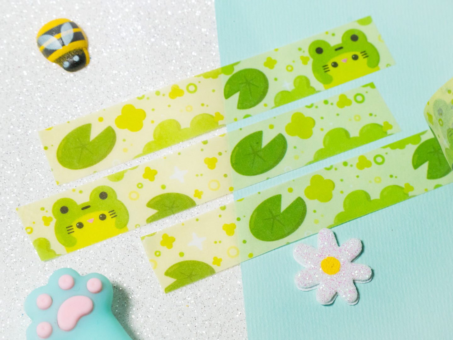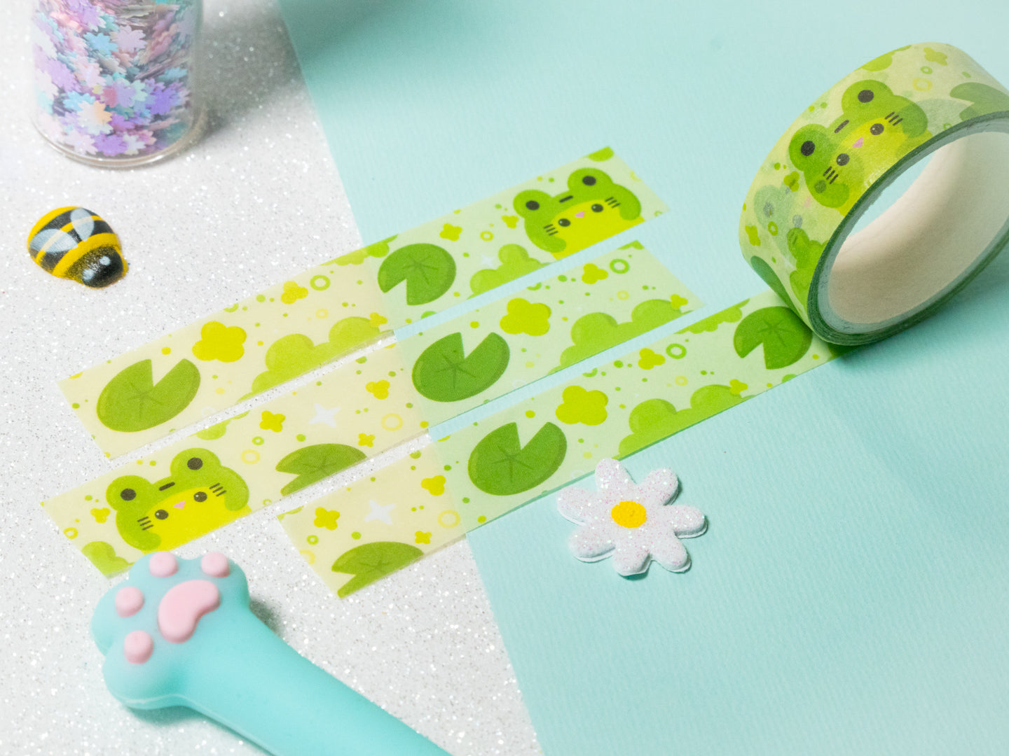Ruban adhésif washi kawaii pour les amoureux des nénuphars 15mm x 10m Parfait pour décorer un bullet journal.