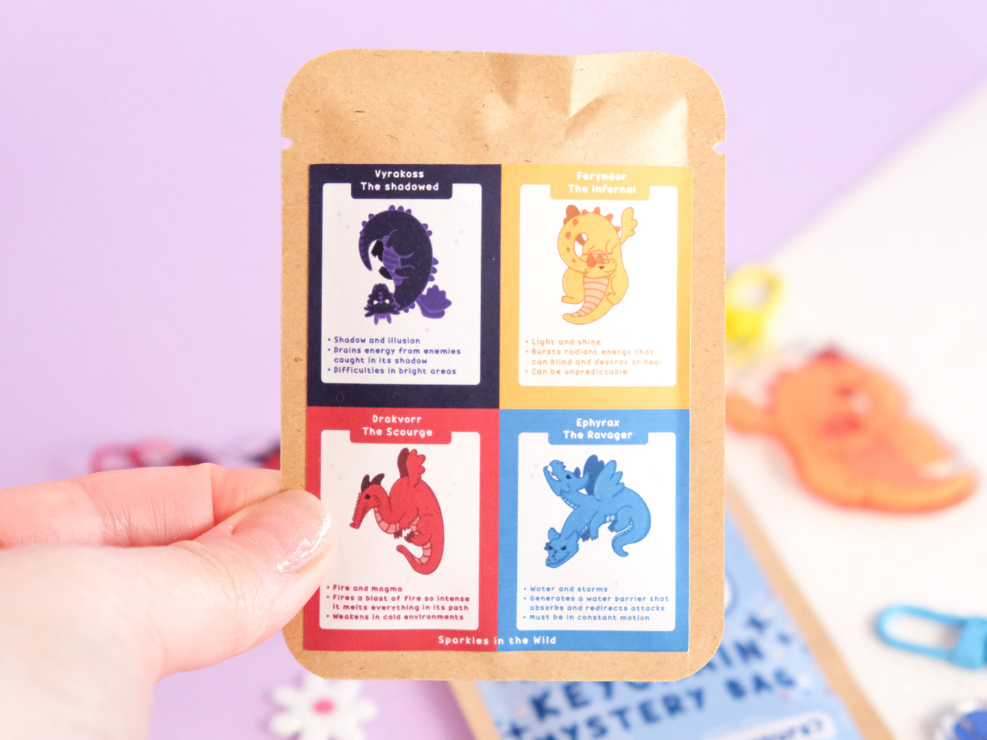 Chaque sac mystère contient un porte-clés de la collection Wild Dragons.