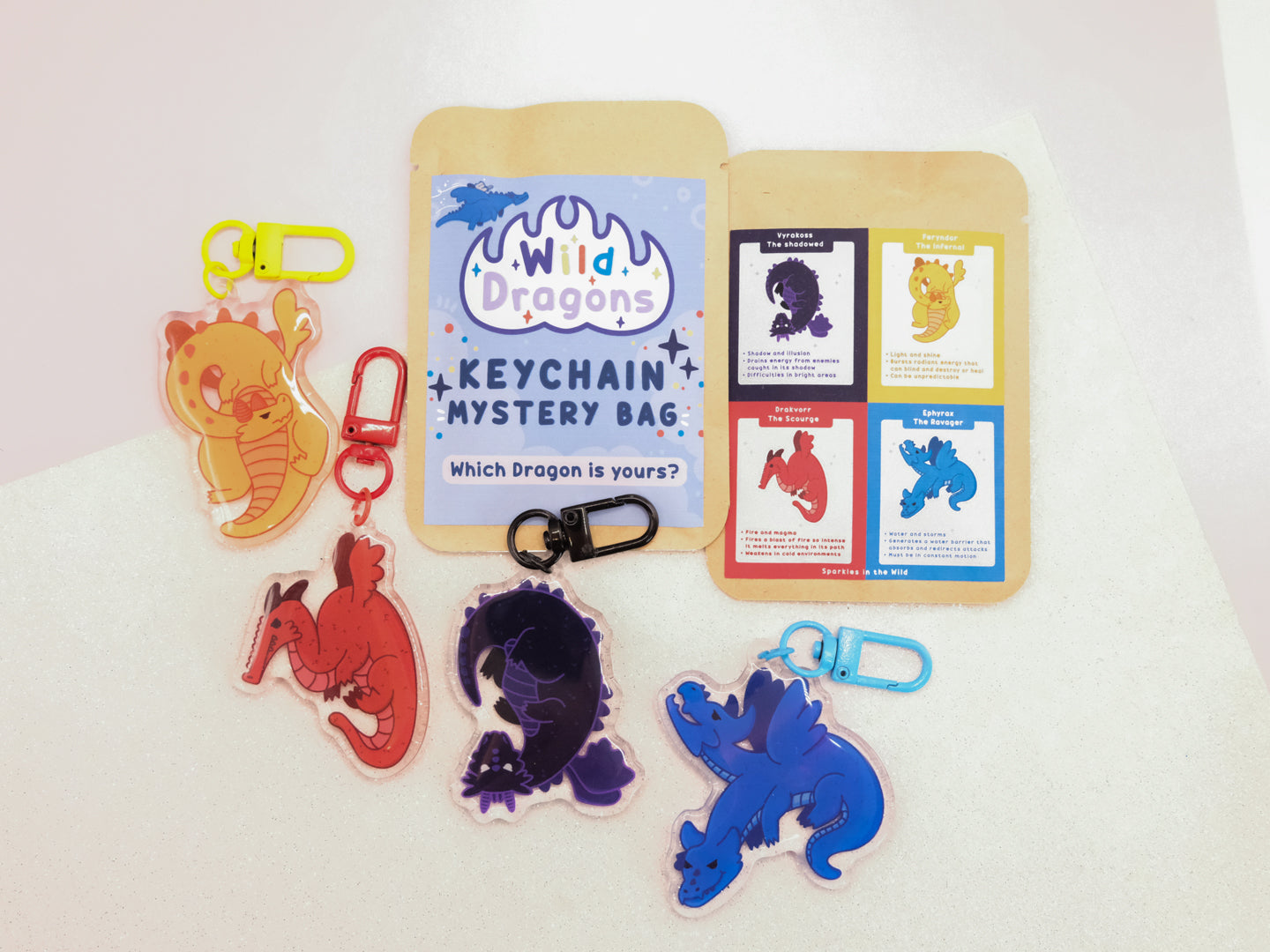Sachet Mystère de 1 Porte-clés Dragon Kawaii (mais féroce !) en Acrylique 🐲